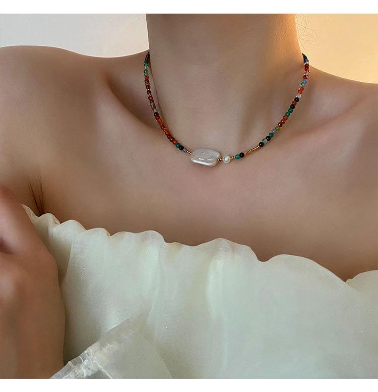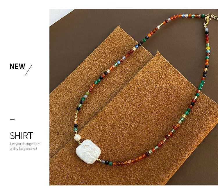 Collar con colgante de perla de agua dulce de piedra natural barroca para mujer, estilo retro, sencillo, ligero, de lujo, elegante, de nicho, a la moda.