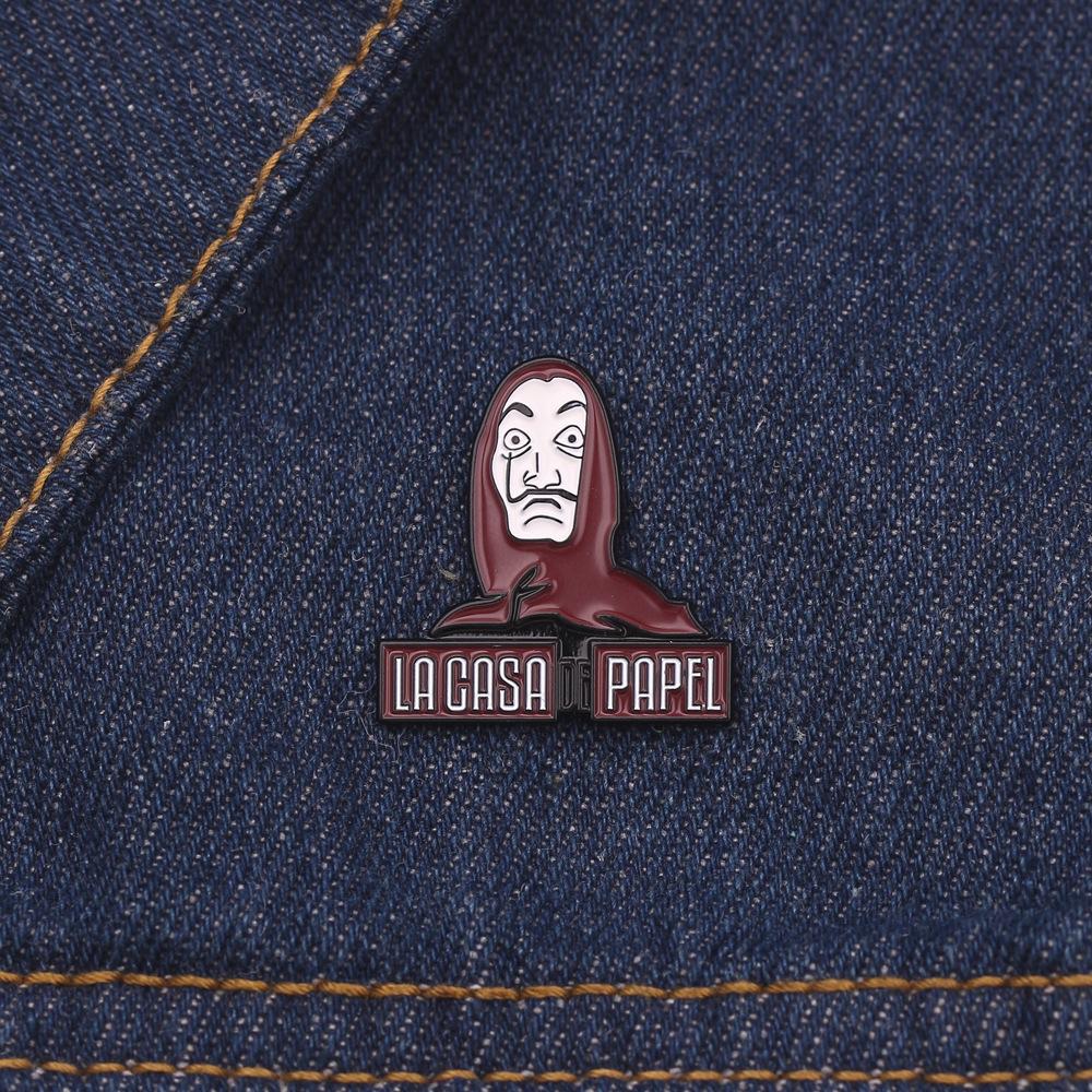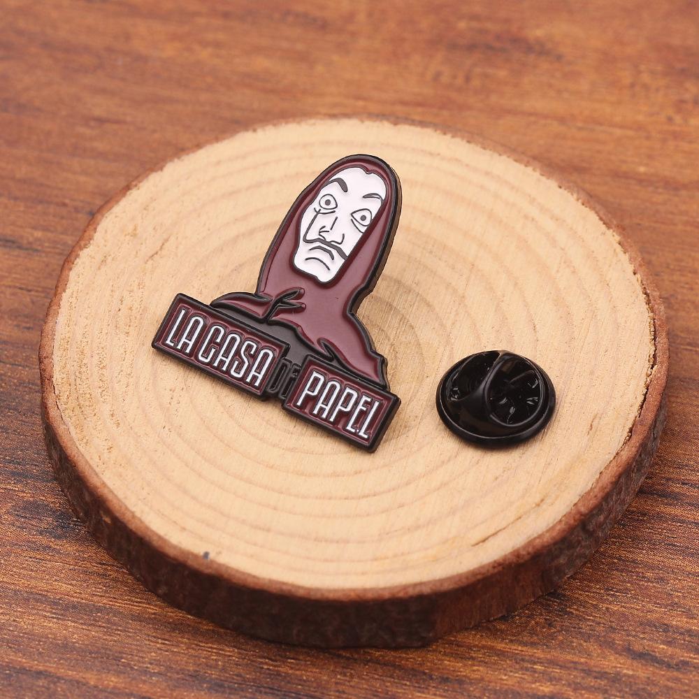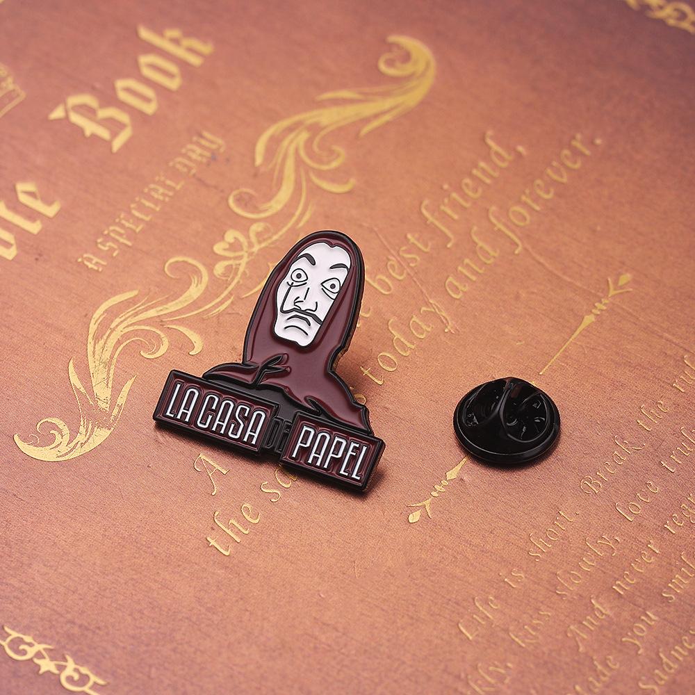 Broche de la Casa de Papel Moneda Transfronteriza, Máscara de Dalí, Insignia de Metal, Accesorios para Mochilas
