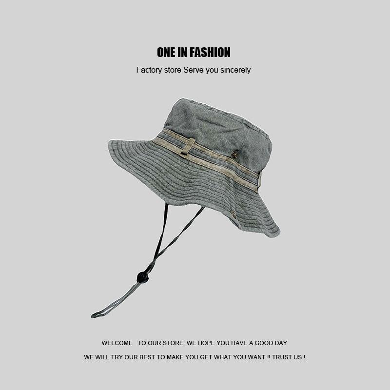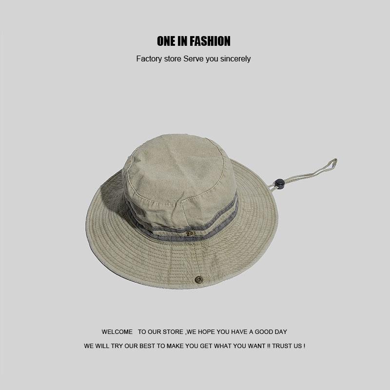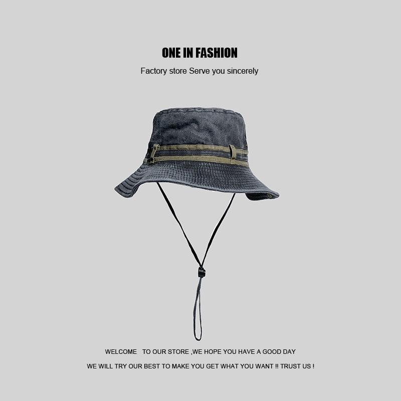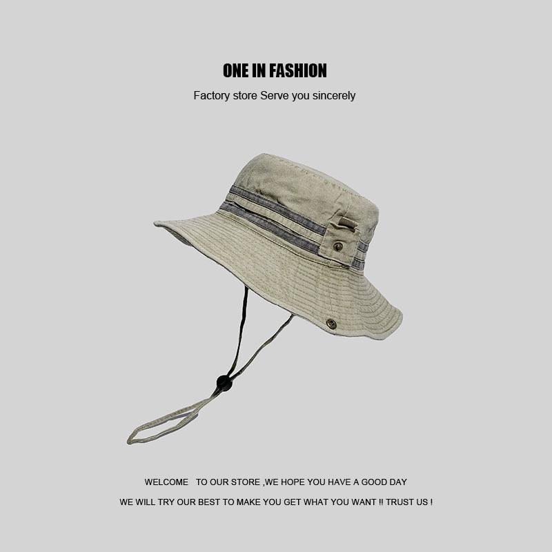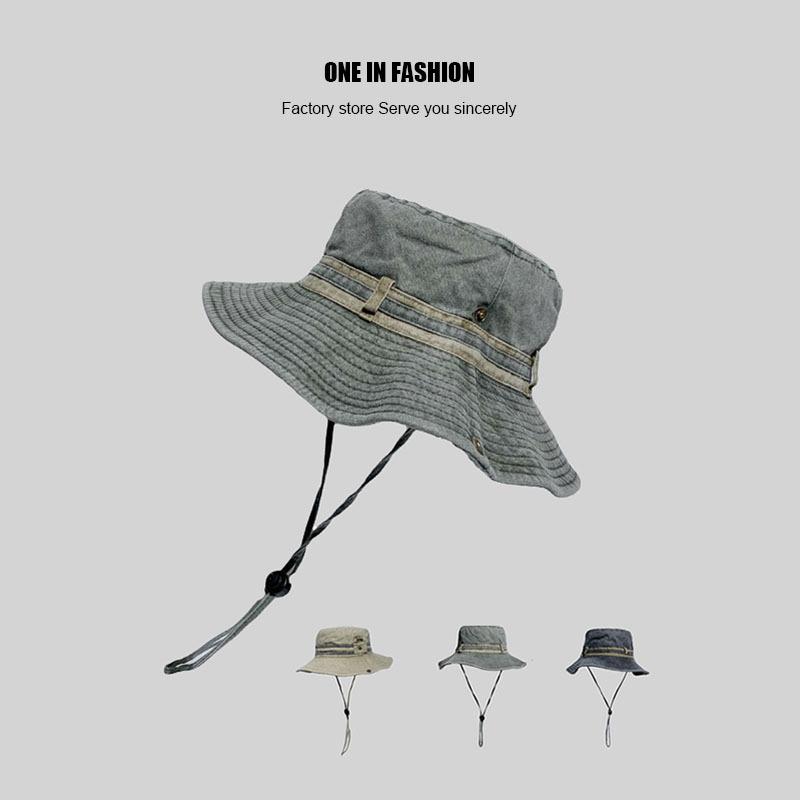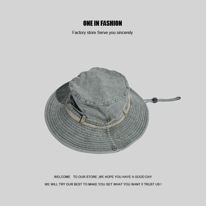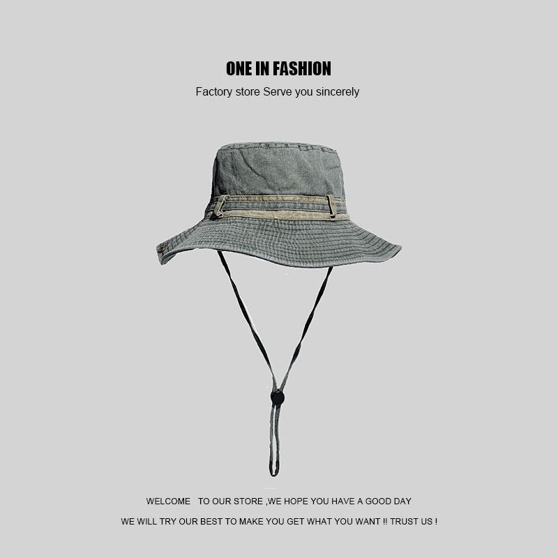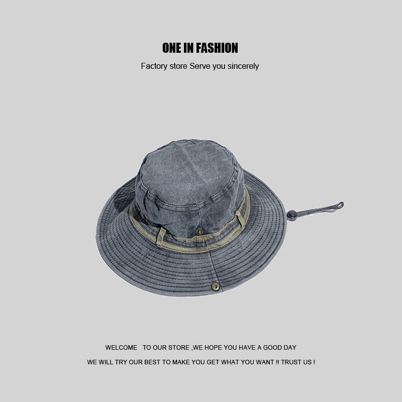 Sombrero de pescador japonés lavado de color puro para hombres y mujeres, con cordón ajustable, sombrero de lavabo grande, para exteriores, ocio, protección solar, sombrero funcional, marea