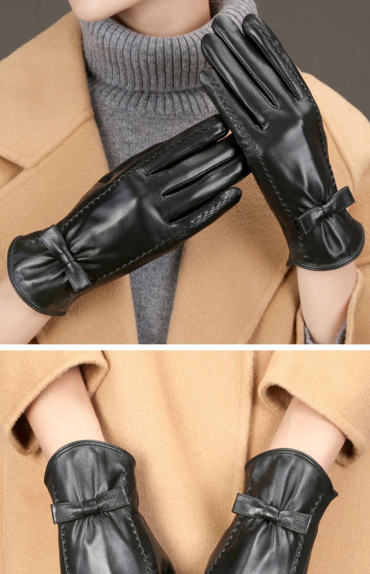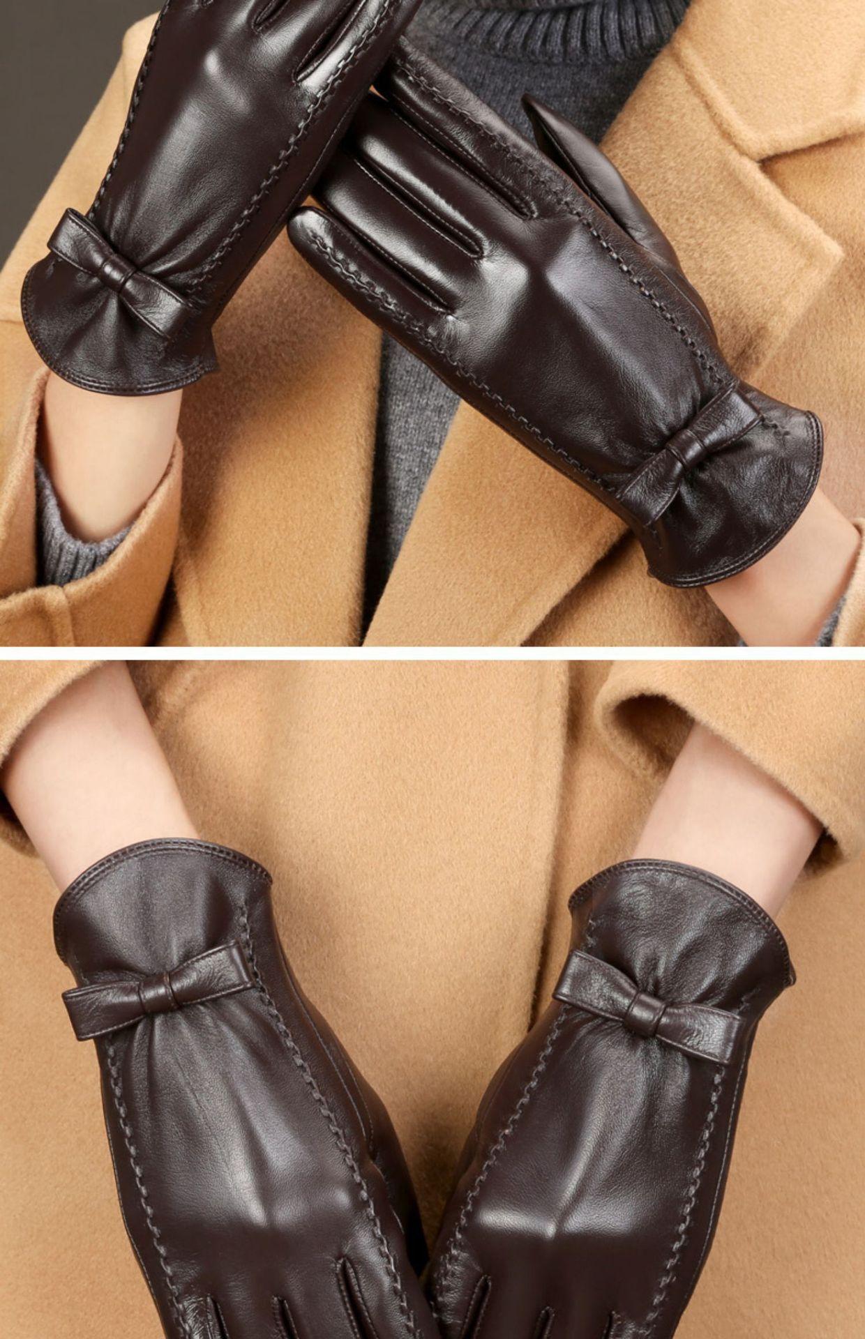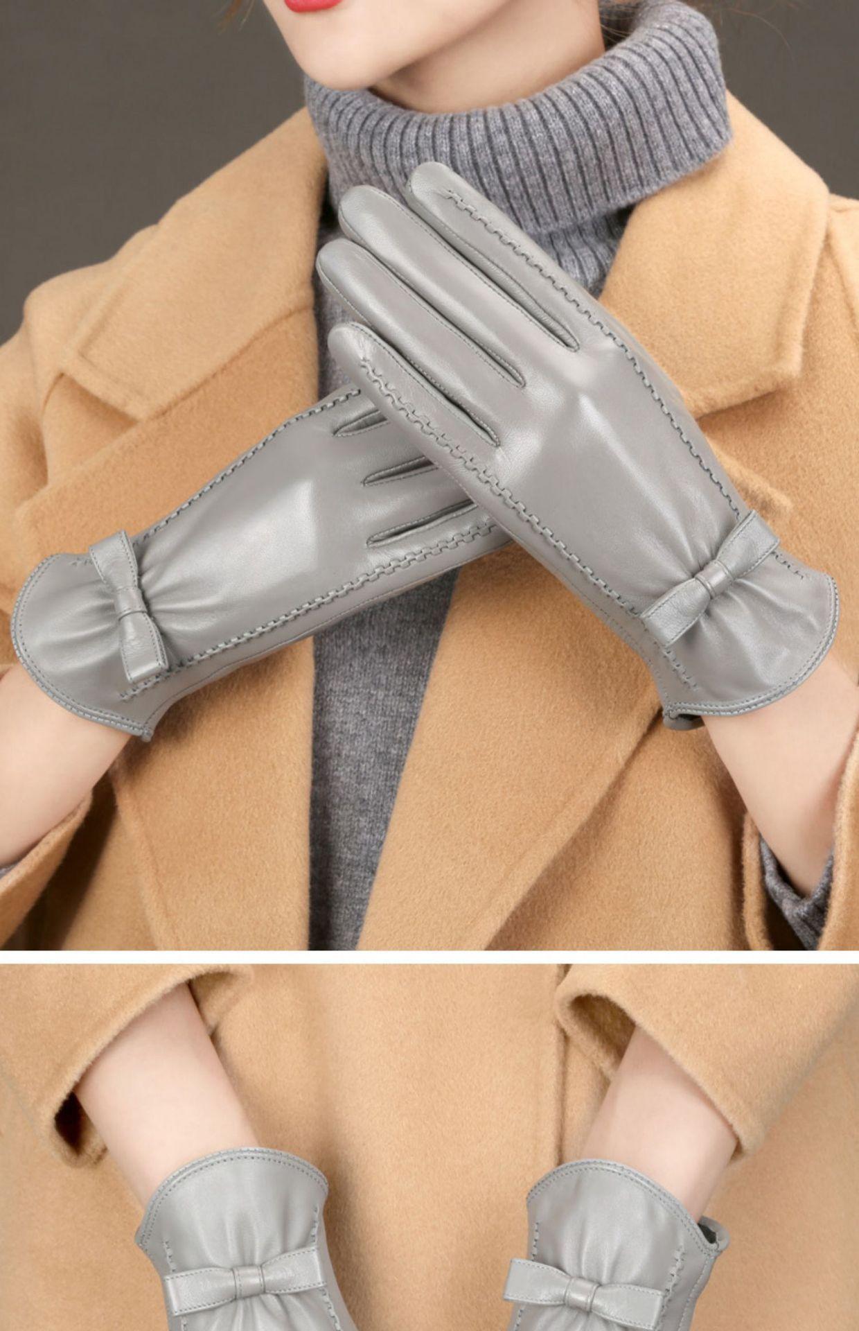 Guantes de Invierno de Cuero para Mujer para Montar y Conducir a Prueba de Frío a Prueba de Viento Forrados de Lana Cálidos Pantalla Táctil Moda Estilo Coreano Guantes Delgados
