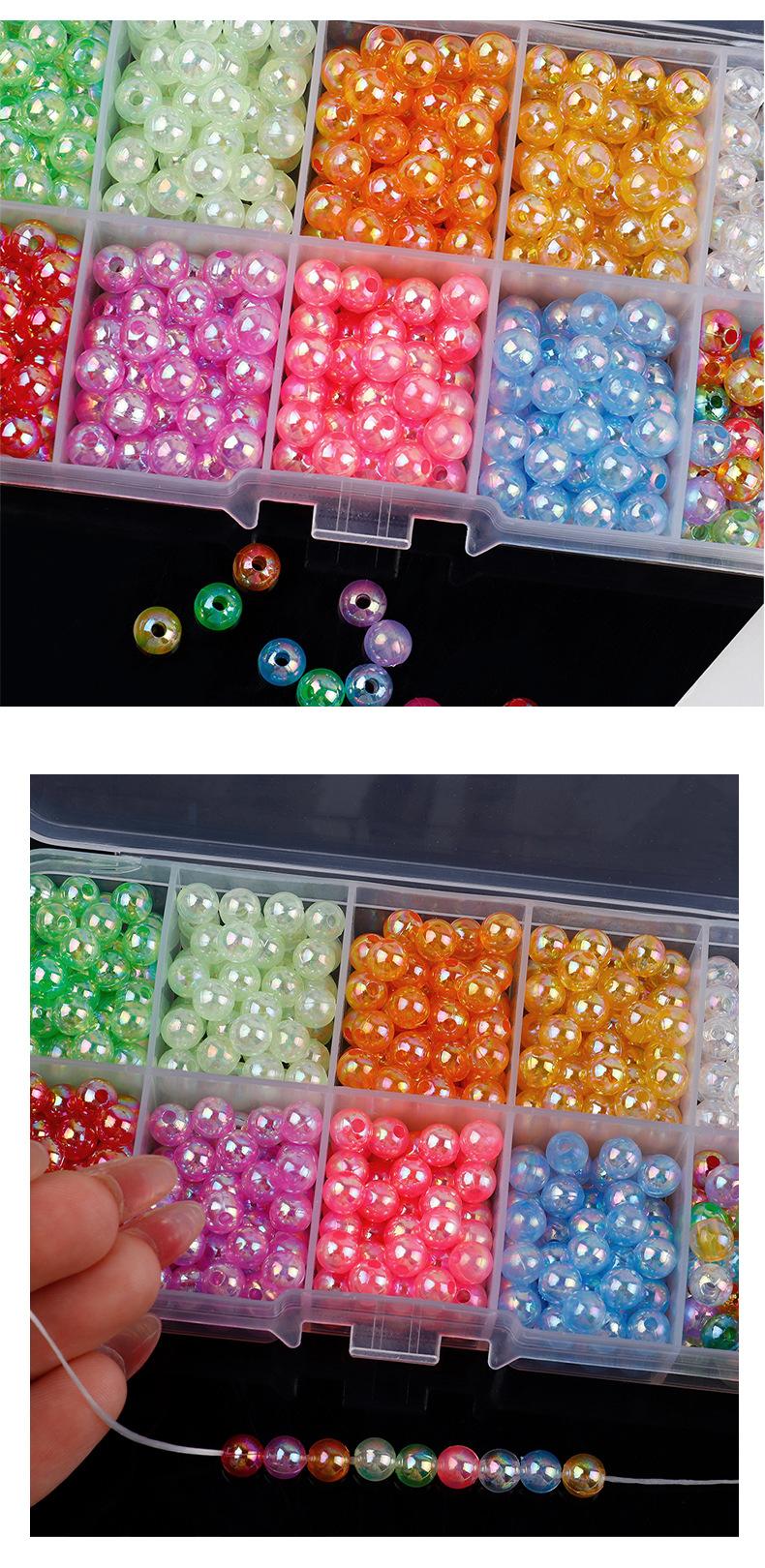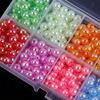 Cuentas de imitación de perla de color de 6 mm con agujero recto, 24 cuadrículas, para pulseras, accesorios de joyería