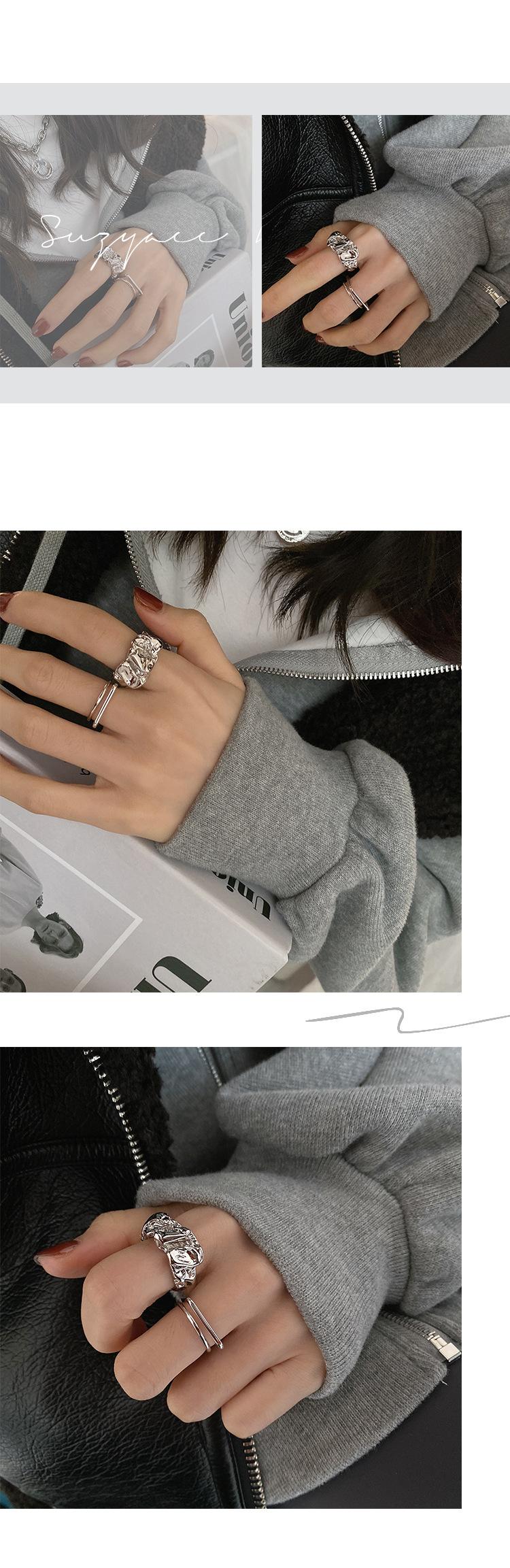 Corea del Sur plata Anillo de Apertura de Dedo Índice Plisado para Mujer Diseño Nicho Ins Moderno Estilo Frío Anillo Personalizado de Moda