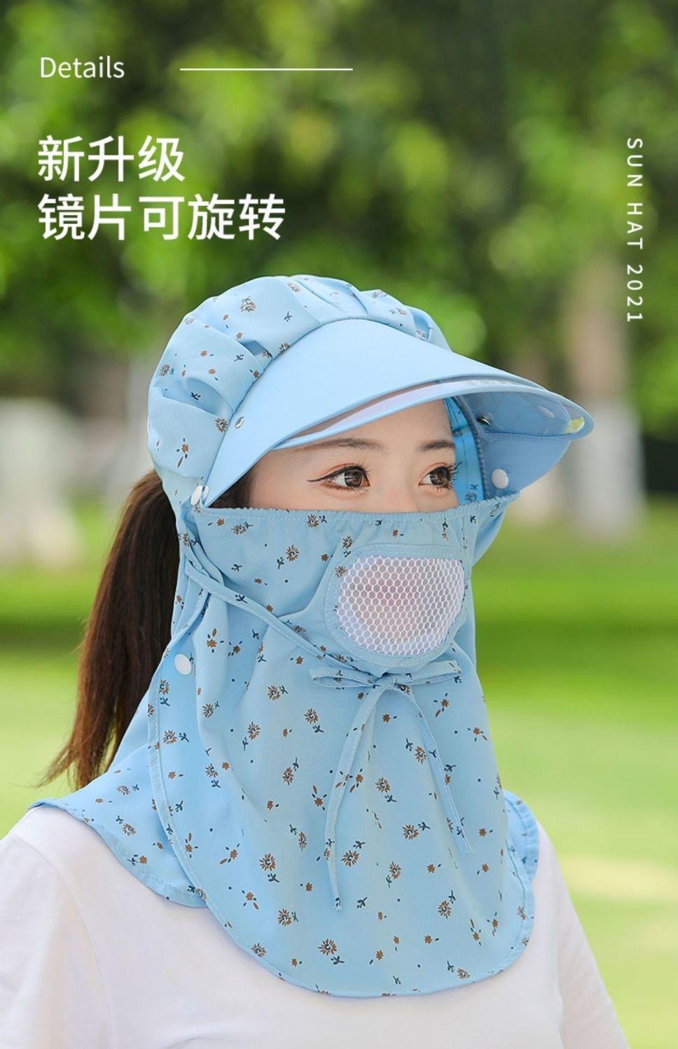 Sombrero de sol con cubrimiento facial para mujer, verano, máscara, gafas, sombrero de sol de secado rápido, trabajo al aire libre, todo incluido, transpirable, sombrero de sol para recolección de té
