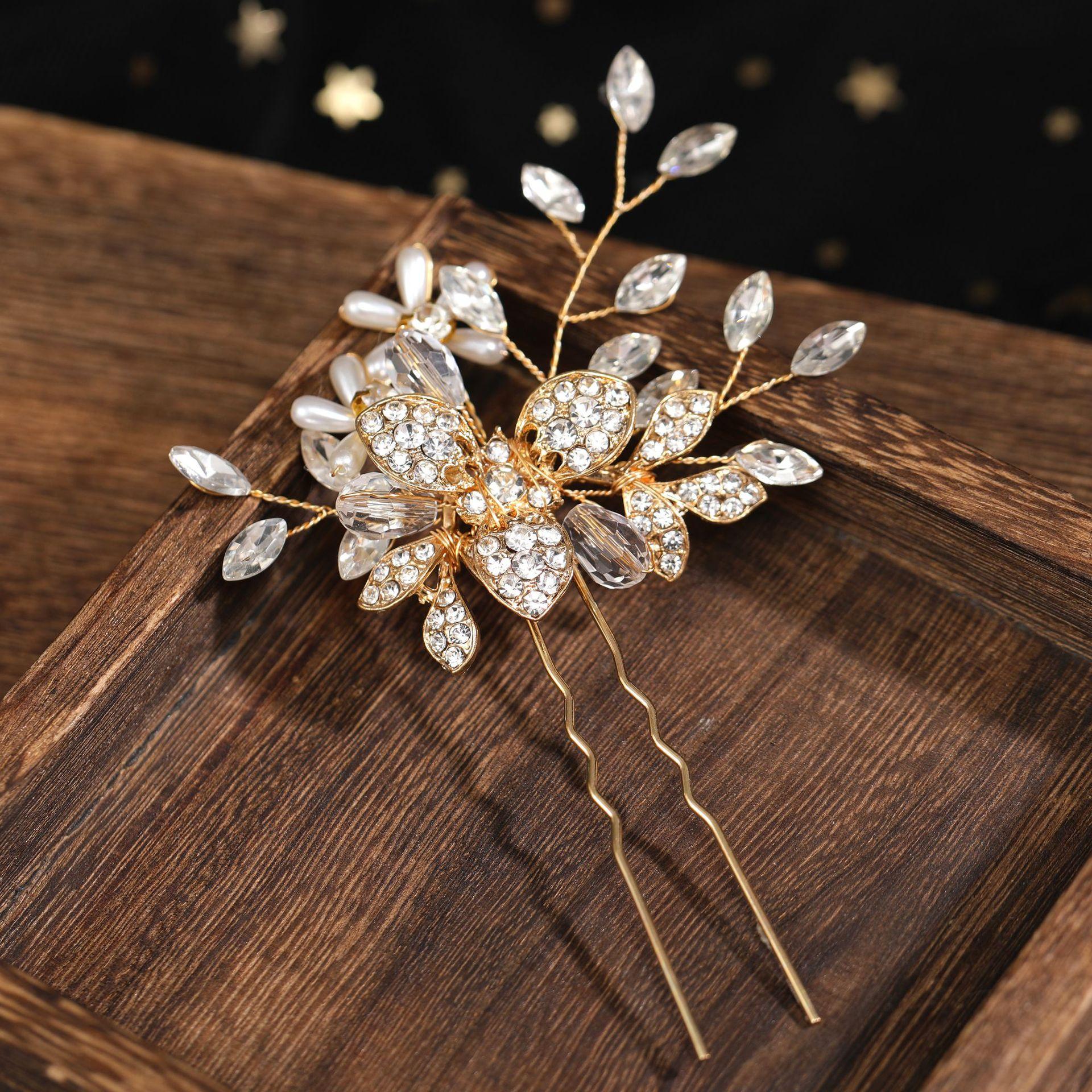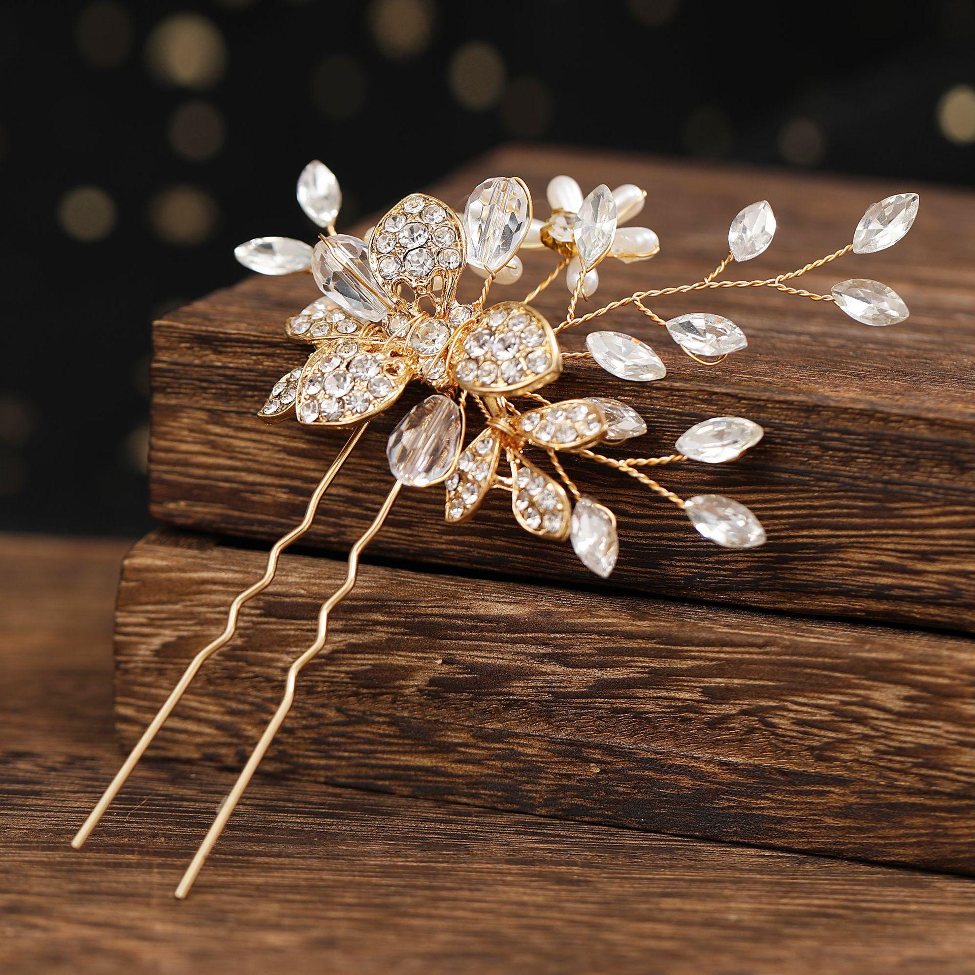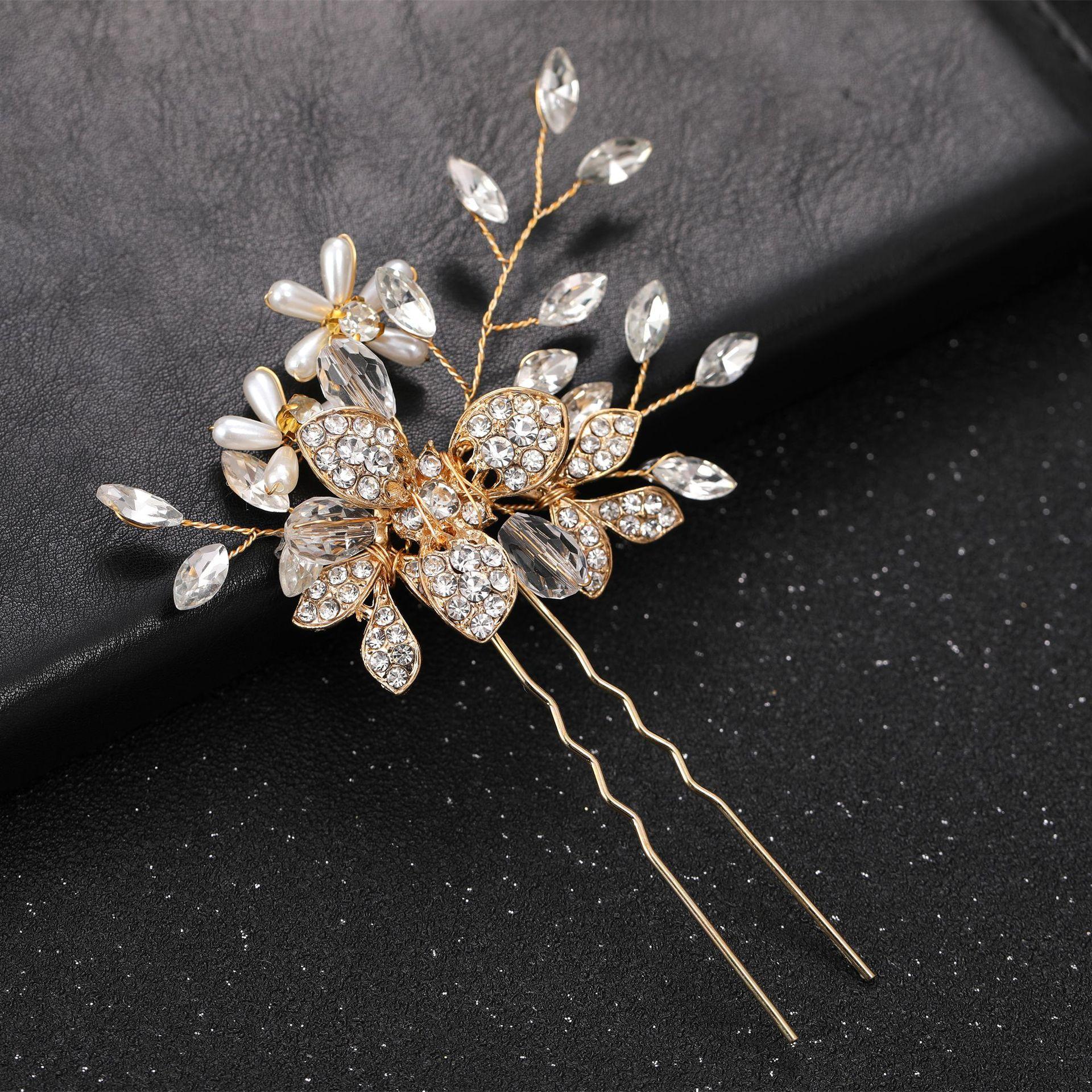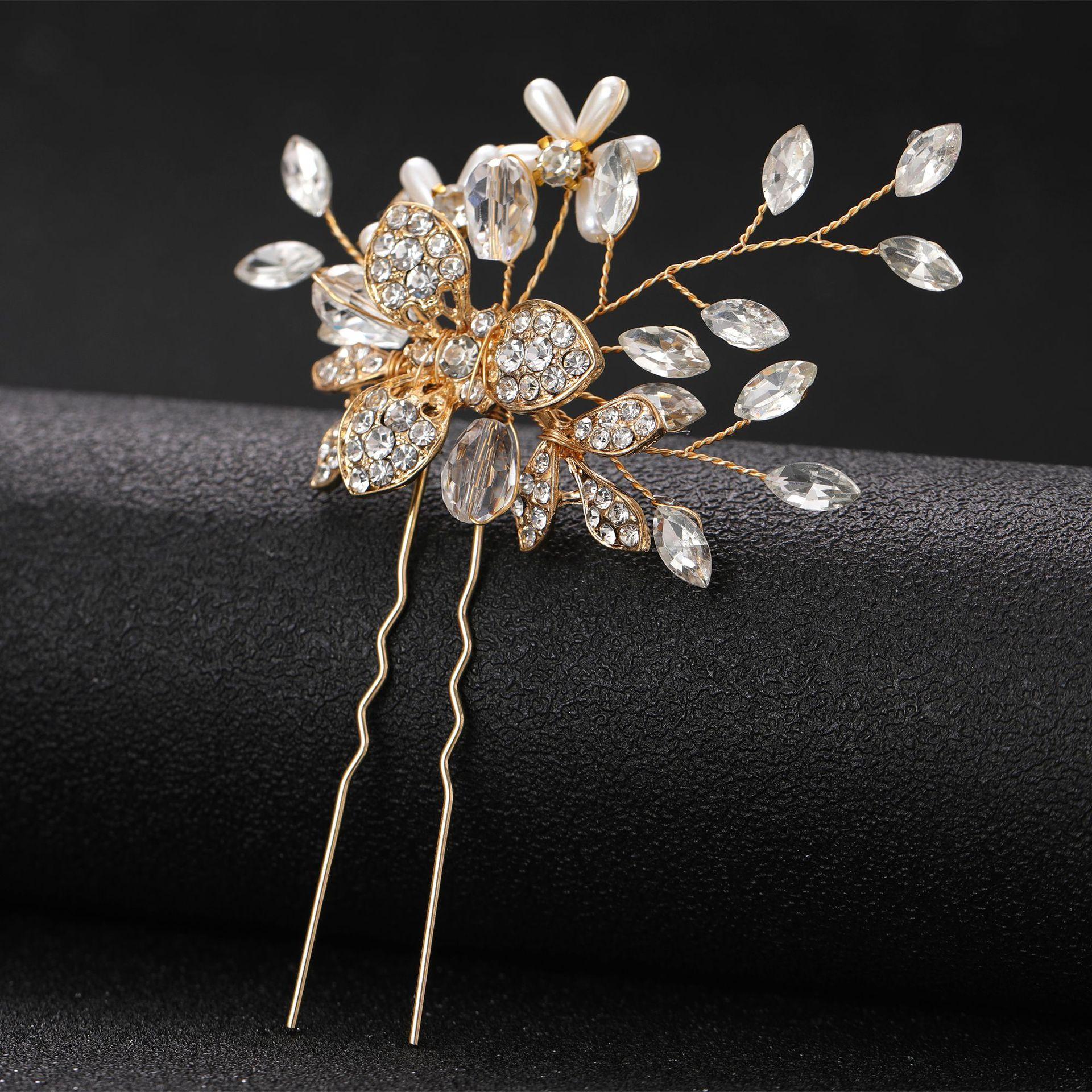Europa y Estados Unidos exclusivo transfronterizo aleación diamante lujo ojo de caballo taladro horquilla en U accesorios para el cabello de boda de novia