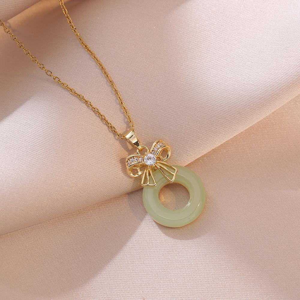 Collar para Mujer, Anillo de Calcedonia de Lazo Retro Simple, Estilo Chino Nuevo, Collar de Diseño Nicho Moderno
