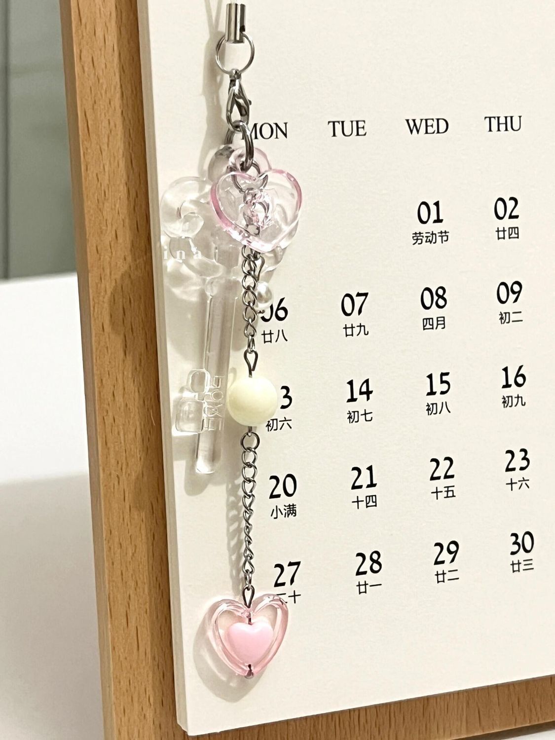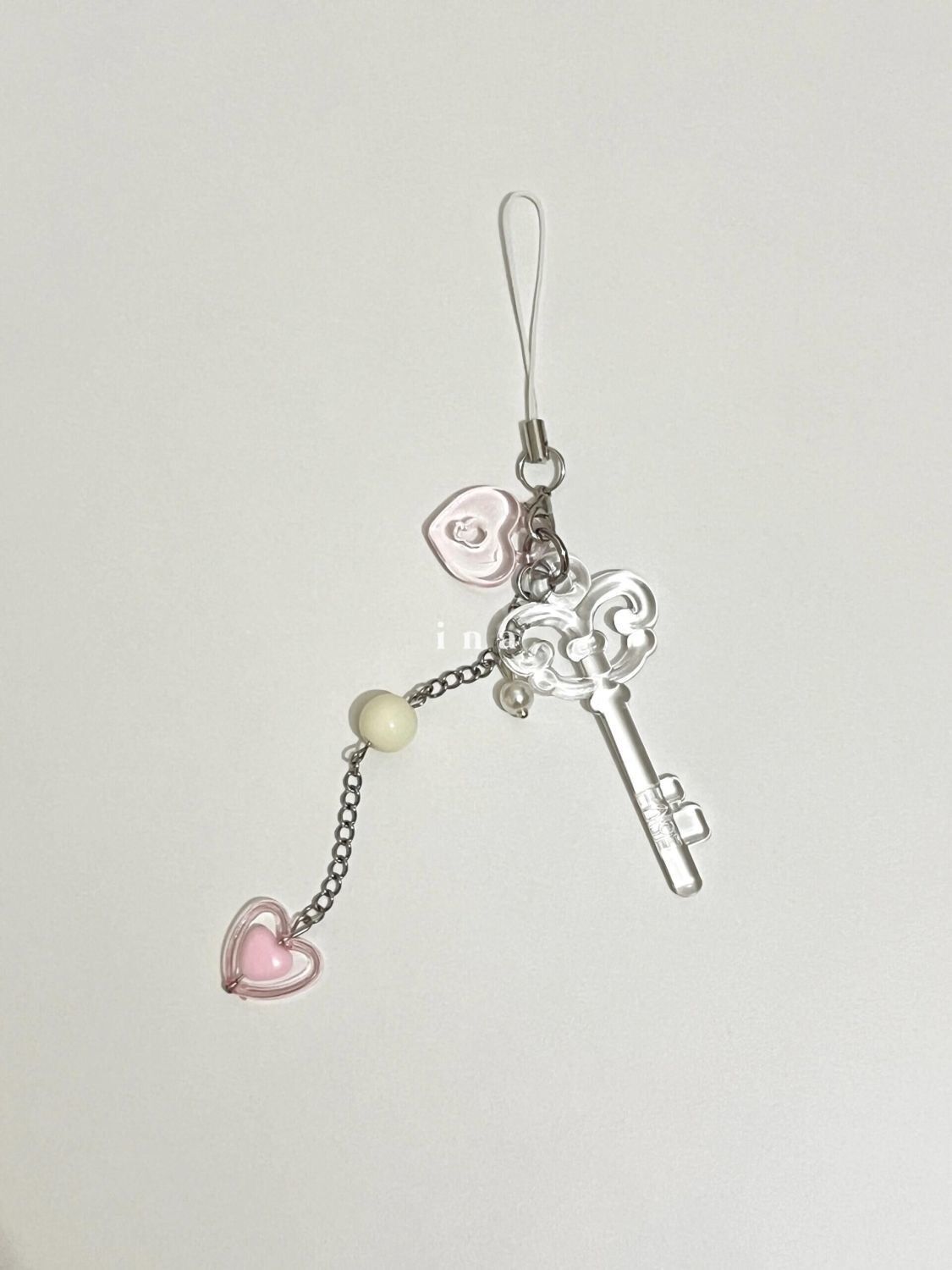 [El secreto de las llaves] Colgante de cadena para teléfono móvil con cuentas, hecho a mano y con un bonito corazón de niña.