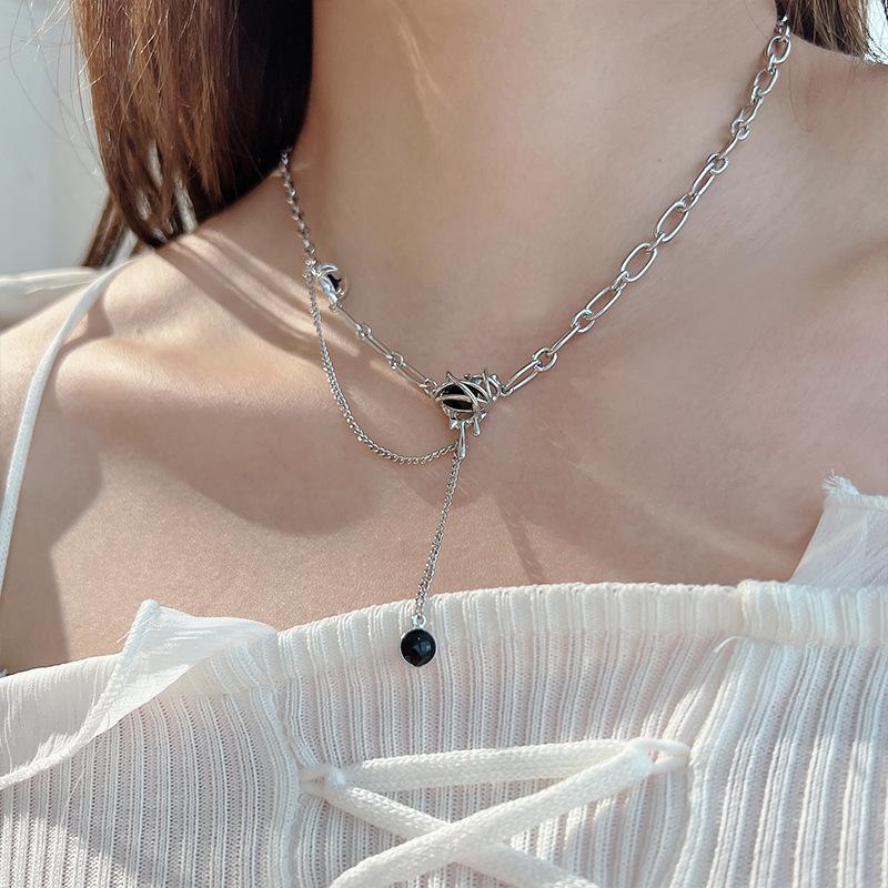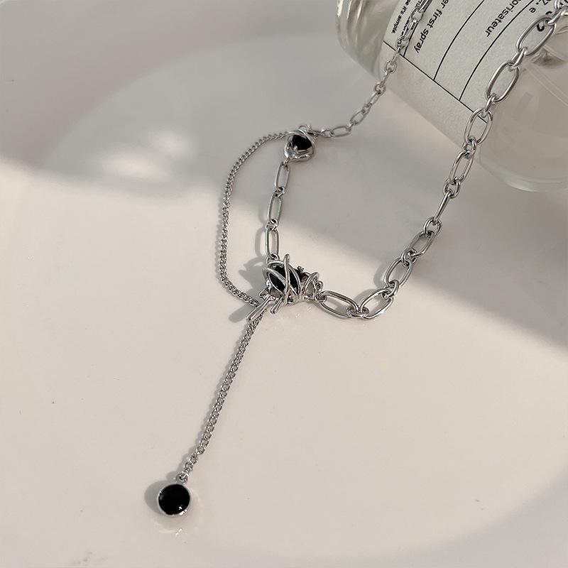 Collar de amor con circonita negra y diseño de estilo dulce y fresco, ligero, de lujo, para otoño e invierno, para chica, cadena de suéter, nueva moda 2022