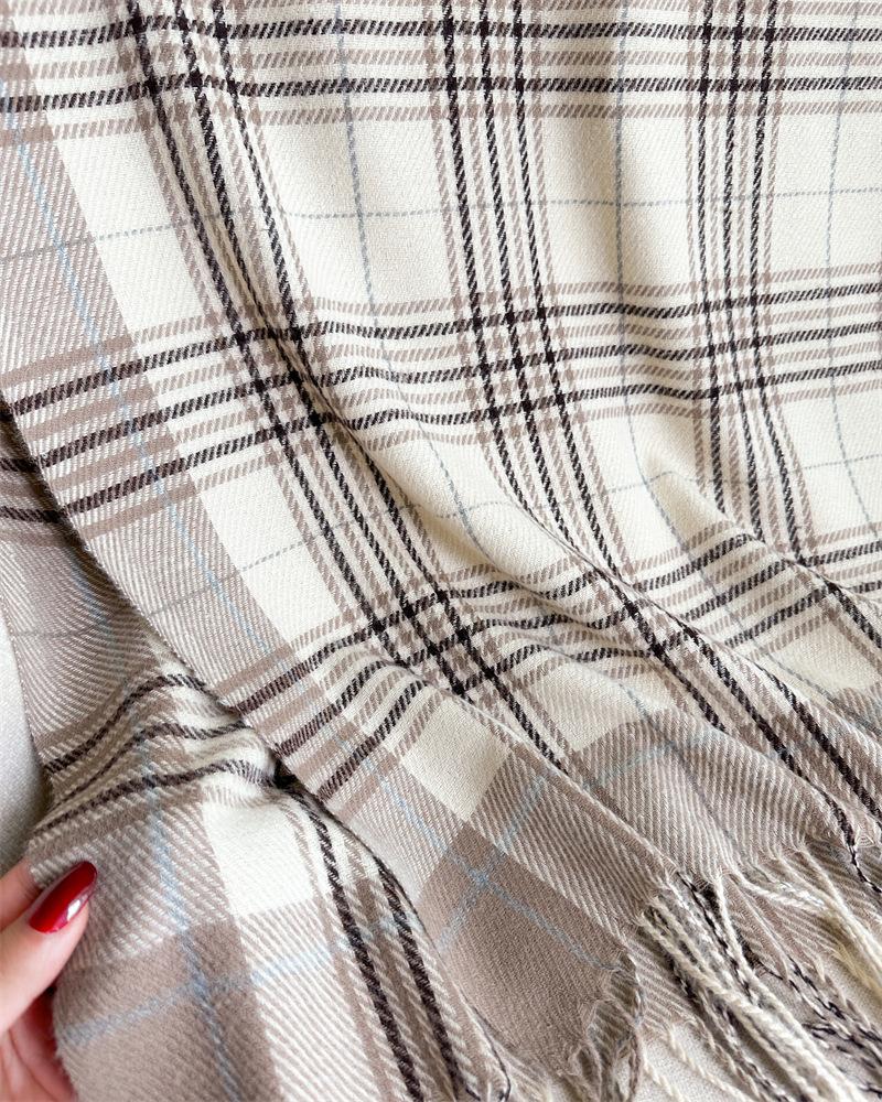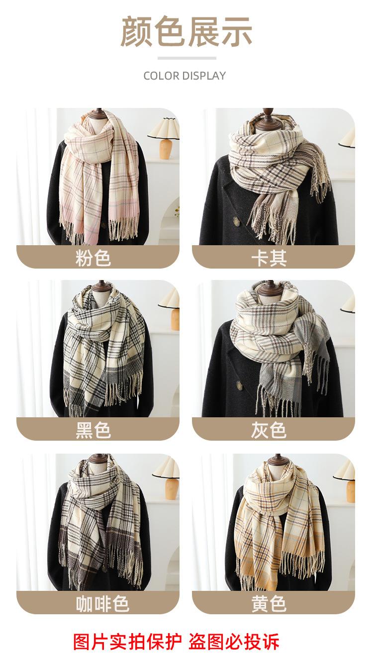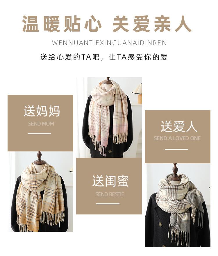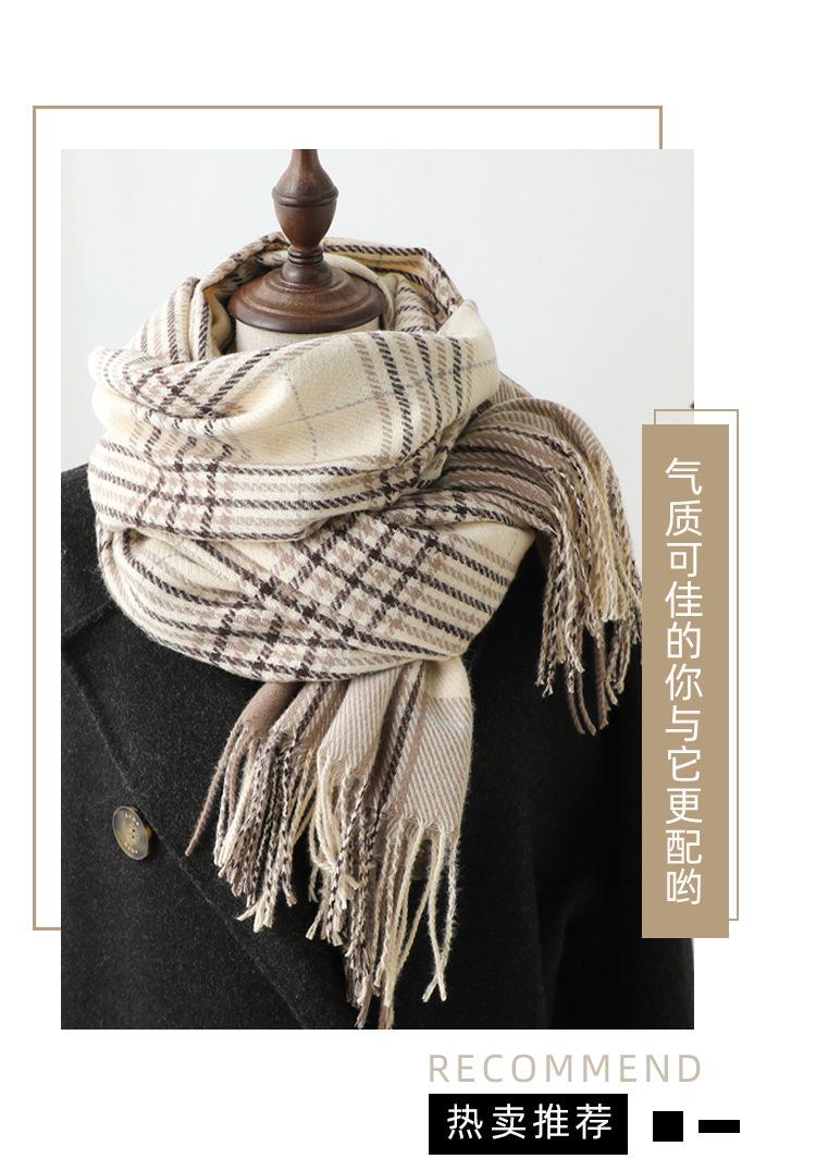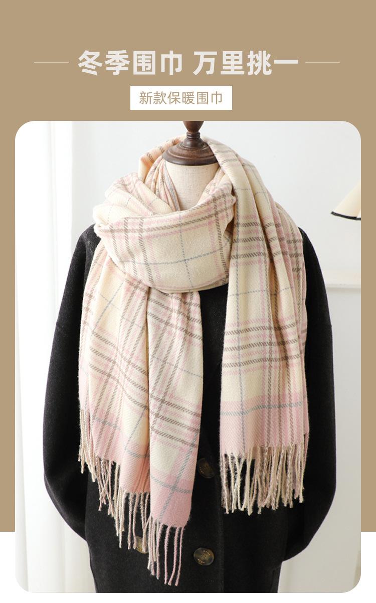 Nueva bufanda de cachemira a cuadros para otoño e invierno, estilo coreano, sencilla, combinable, cálida, con cuello y borlas gruesas para mujer.