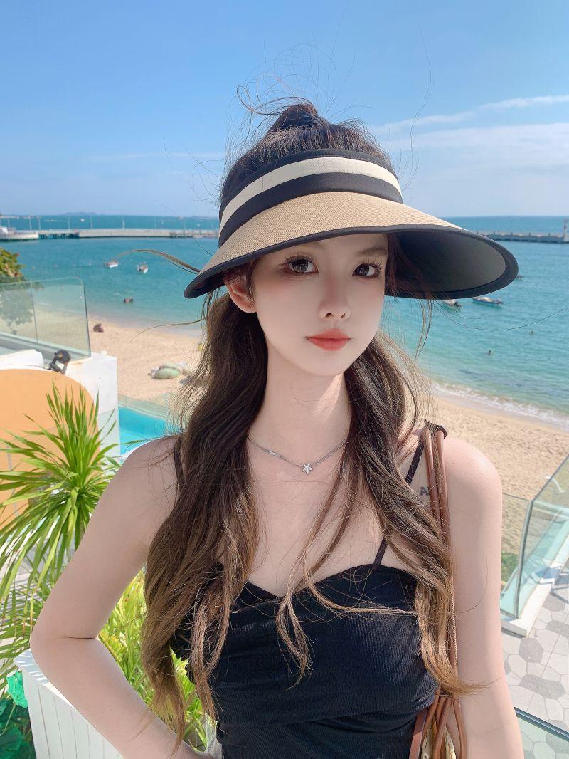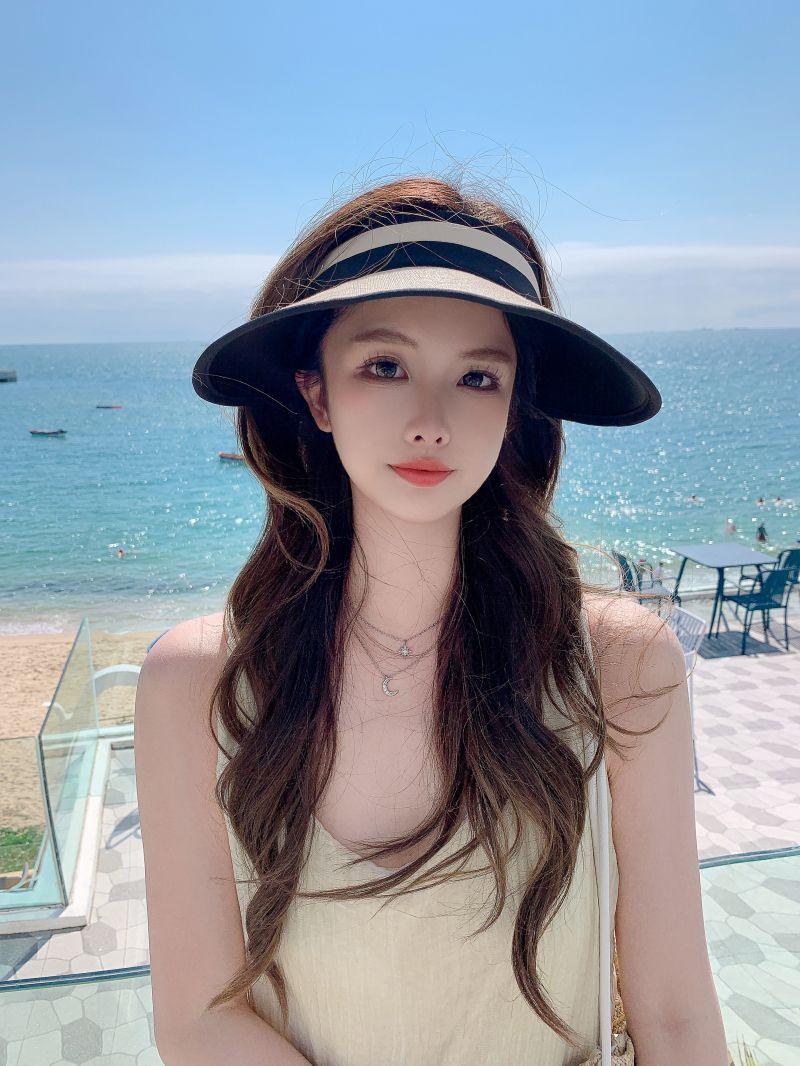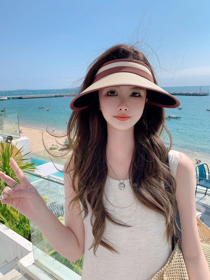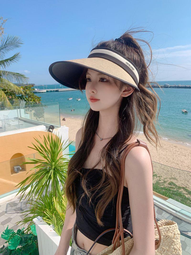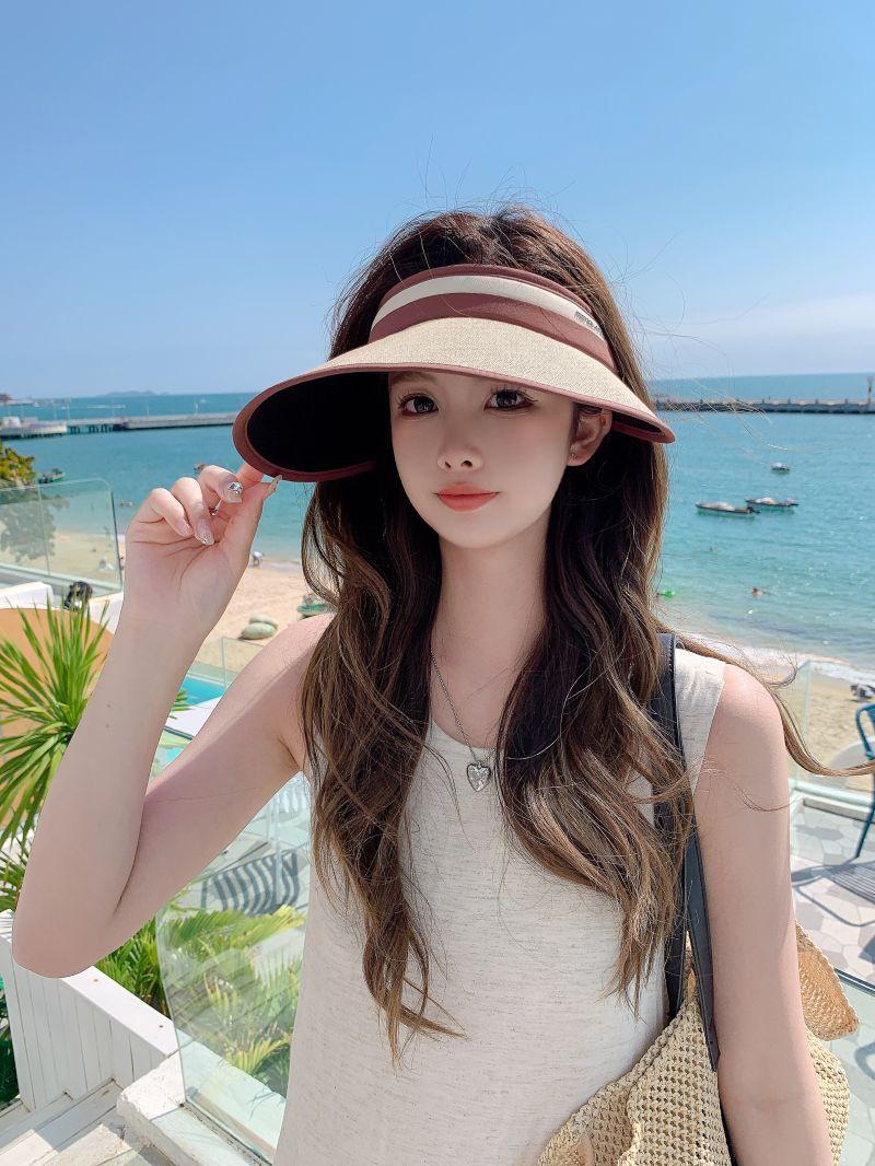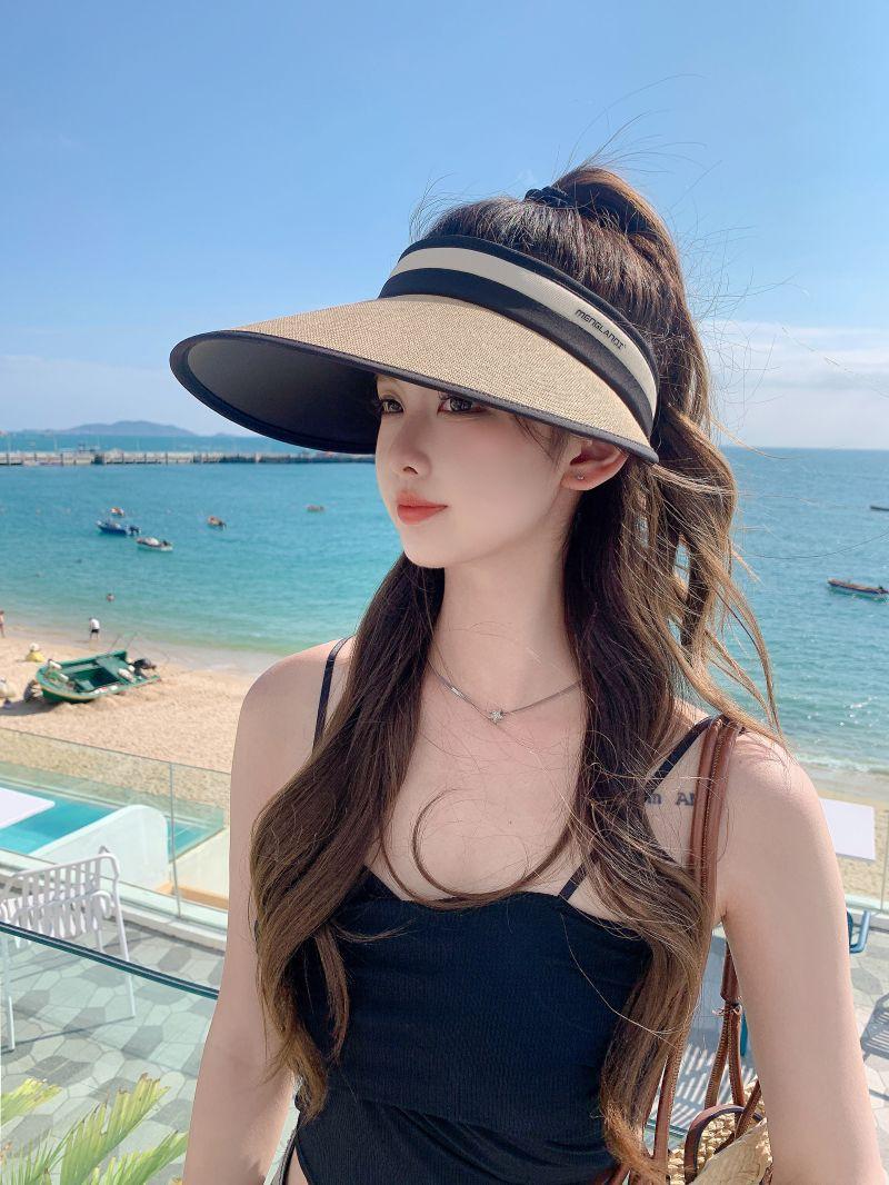 Sombrero de paja antiultravioleta para mujer, sombrero de verano de ala ancha, protección solar, nuevo sombrero plegable vacío de 2024.
