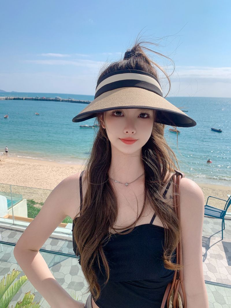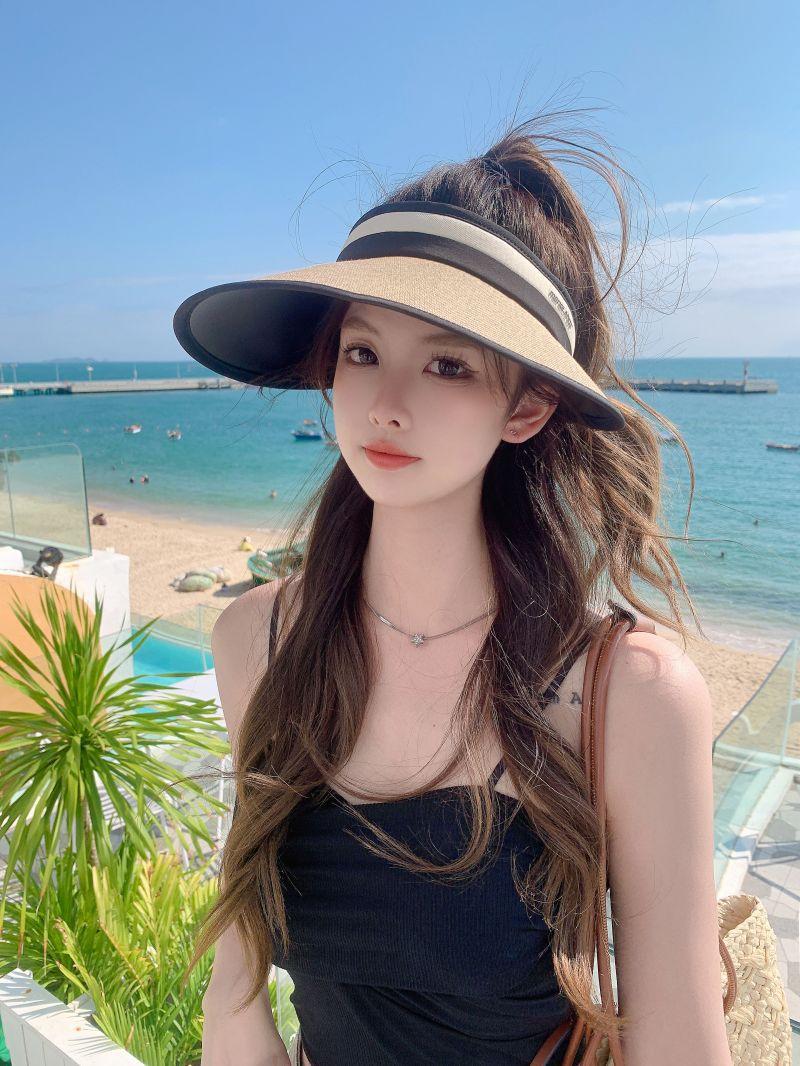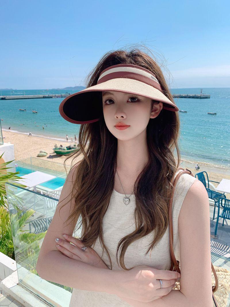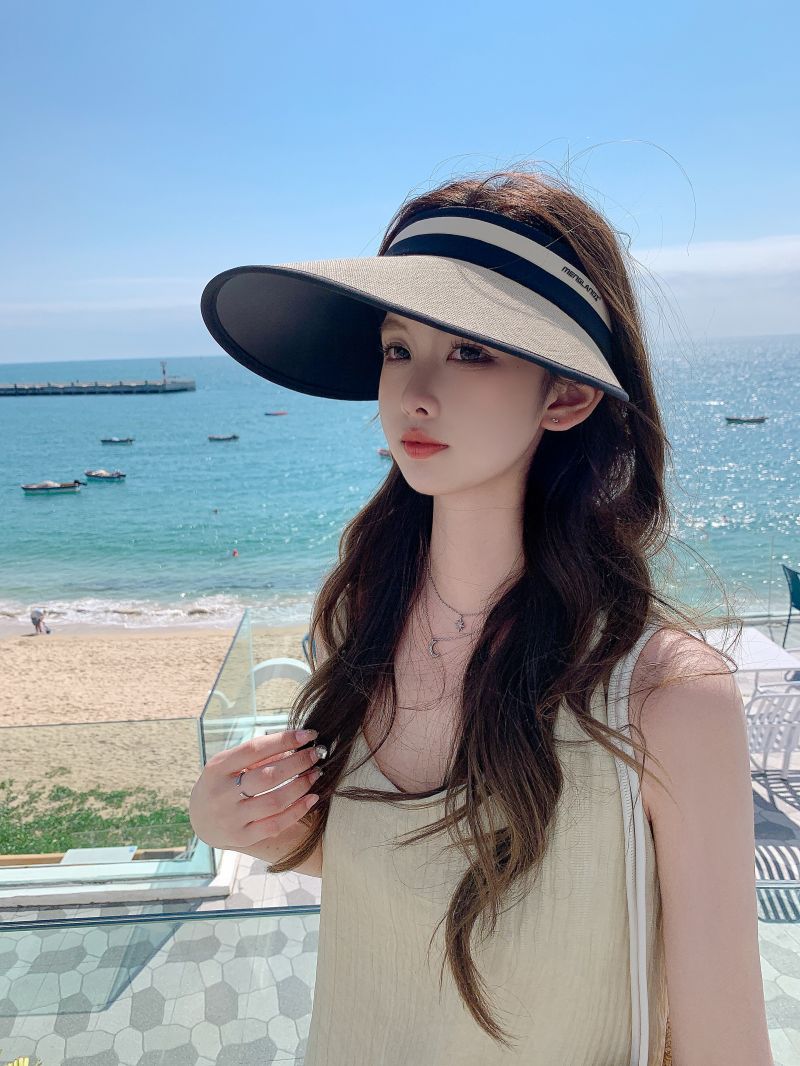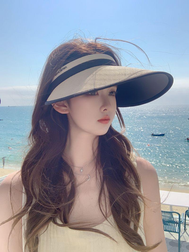 Sombrero de paja antiultravioleta para mujer, sombrero de verano de ala ancha, protección solar, nuevo sombrero plegable vacío de 2024.