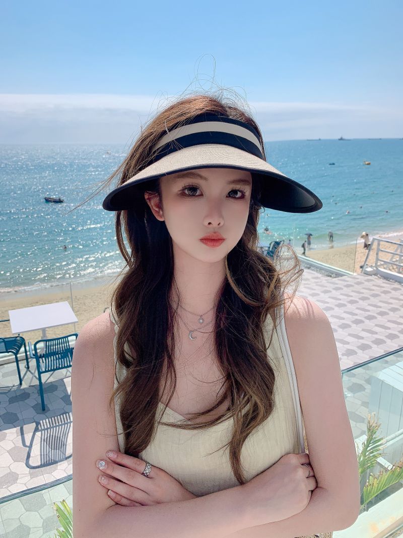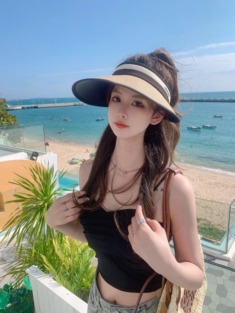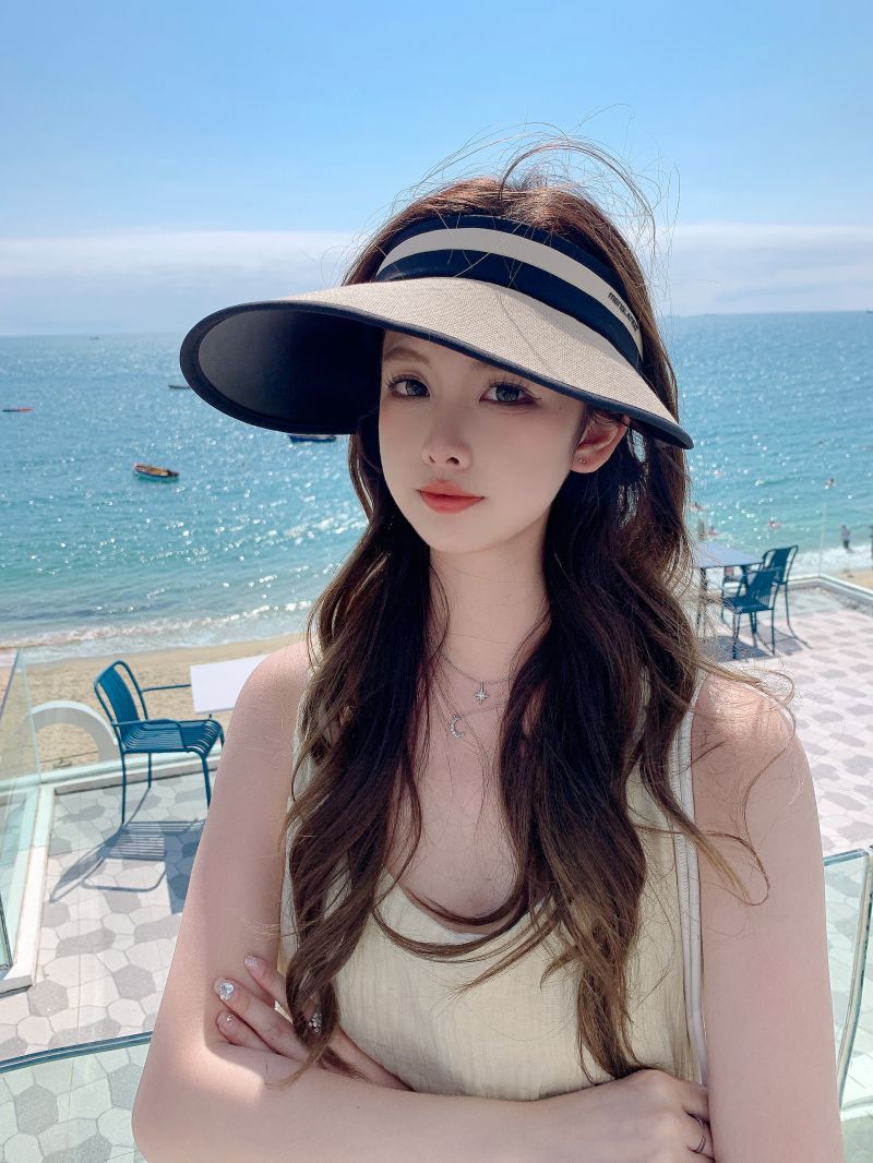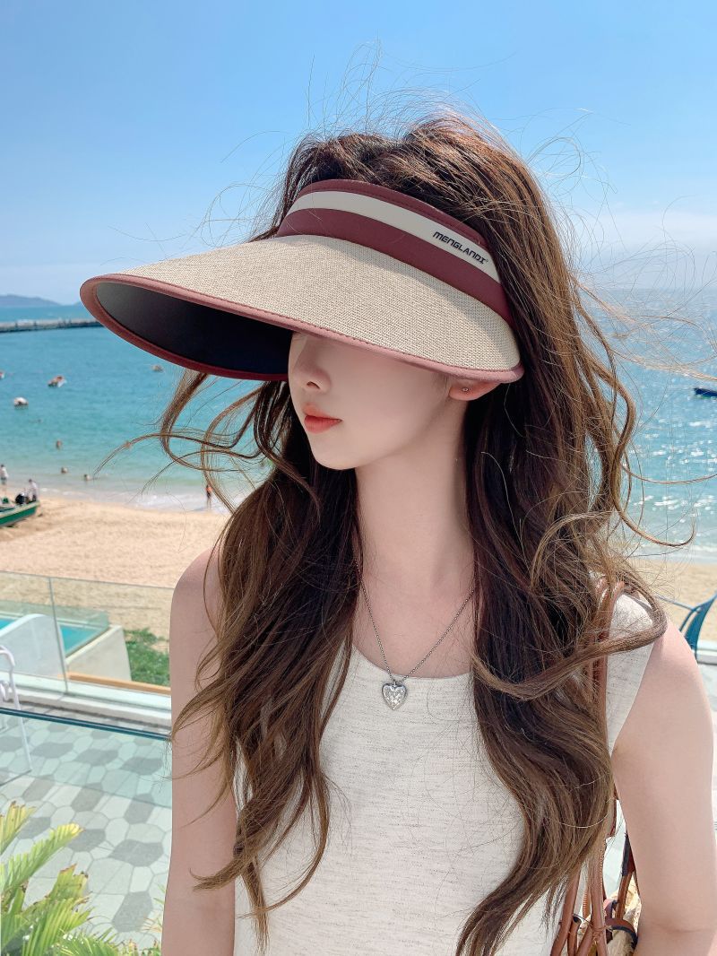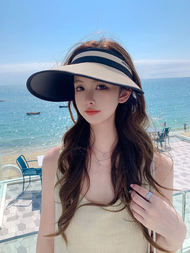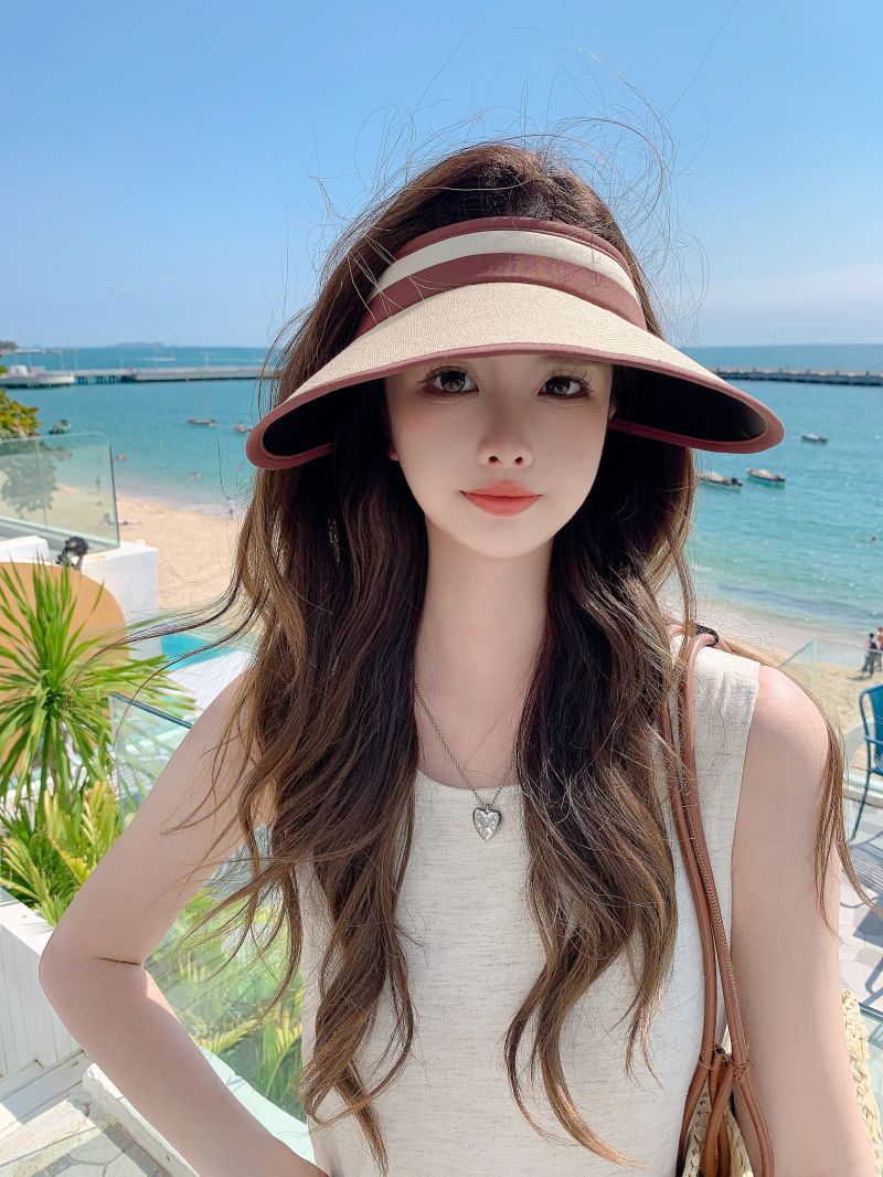 Sombrero de paja antiultravioleta para mujer, sombrero de verano de ala ancha, protección solar, nuevo sombrero plegable vacío de 2024.