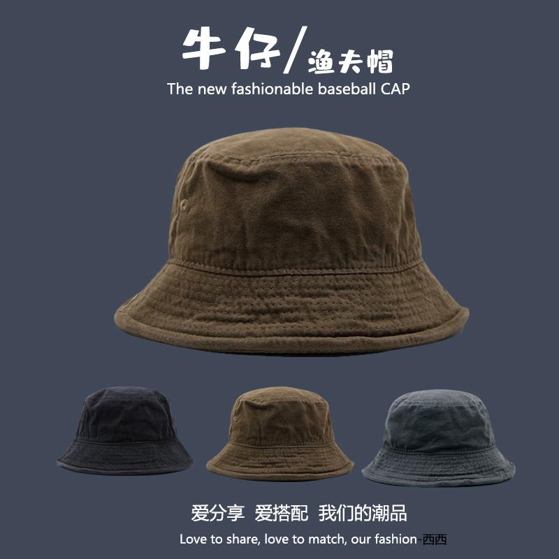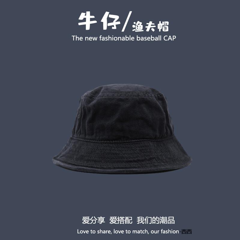 Sombrero de pescador vaquero negro para hombre, sombrero de verano para mujer, estilo japonés coreano, sombrero para el sol retro combinable.