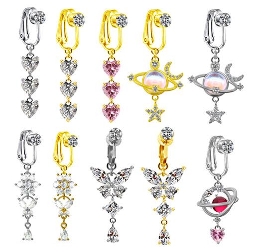 Anillo de ombligo falso con forma de mariposa en forma de corazón y clip de ombligo sin perforaciones de estilo transfronterizo europeo y americano de Gaibei