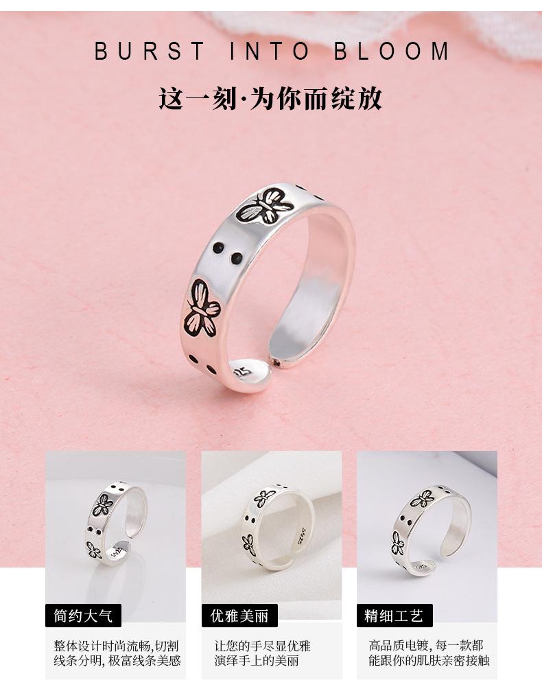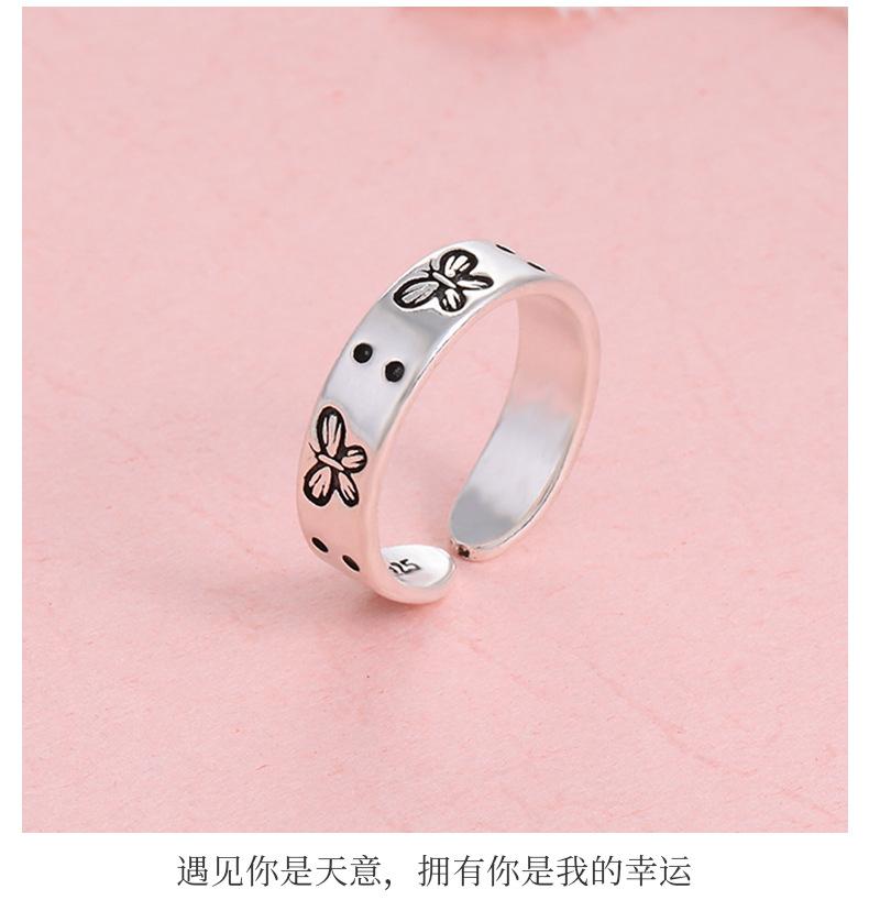 Anillo sencillo retro moderno estilo japonés y coreano para mujer, anillo abierto ajustable de mariposa fresca, joyería