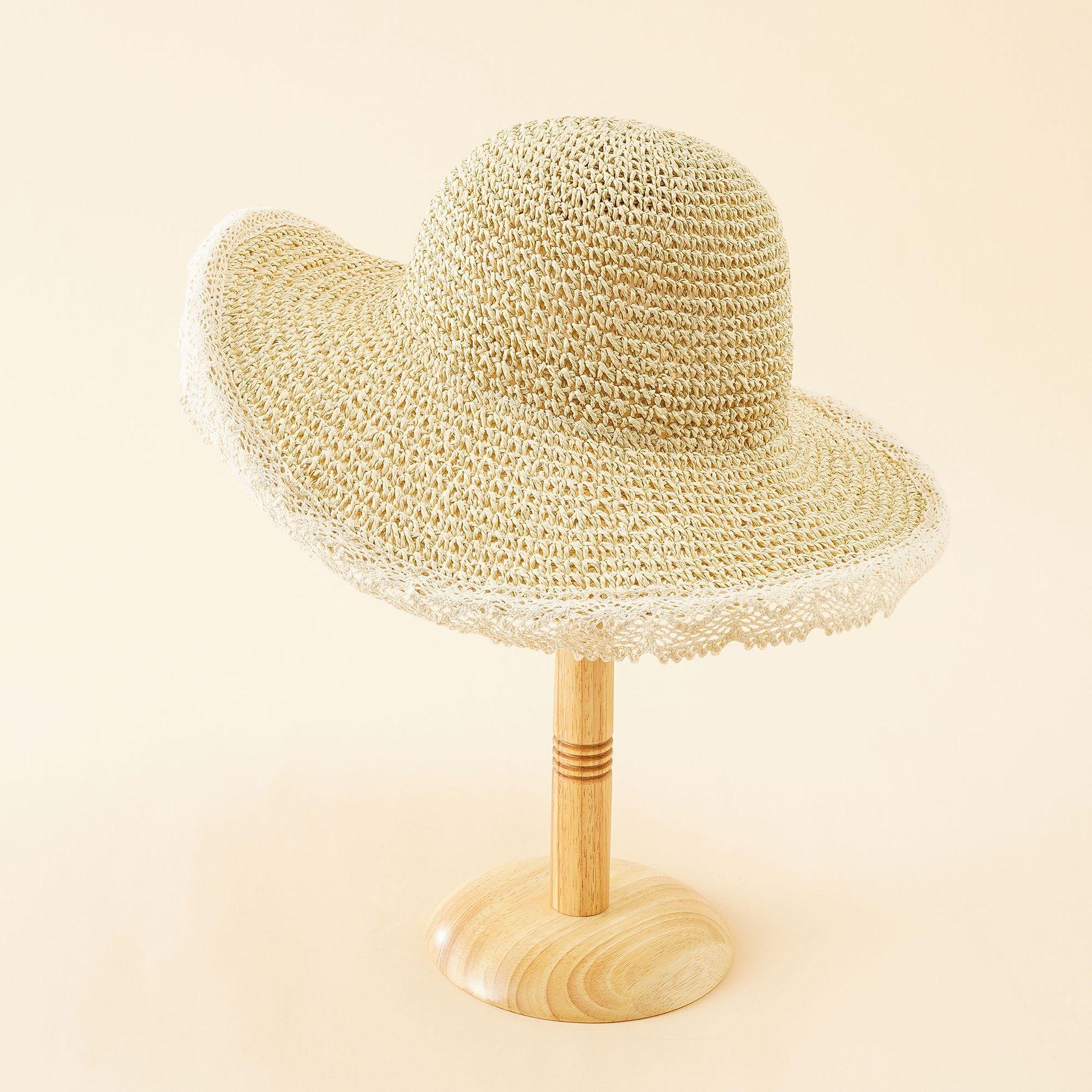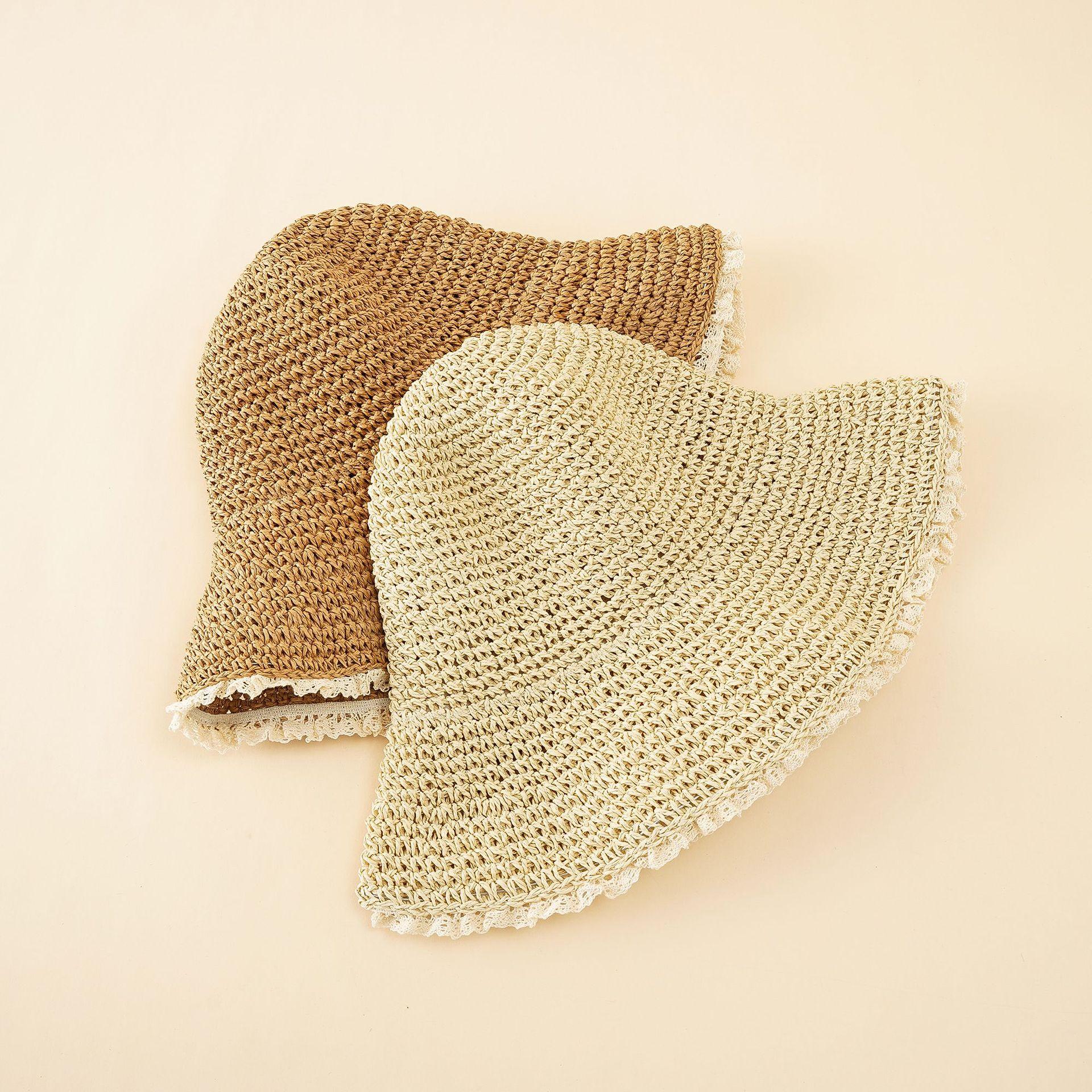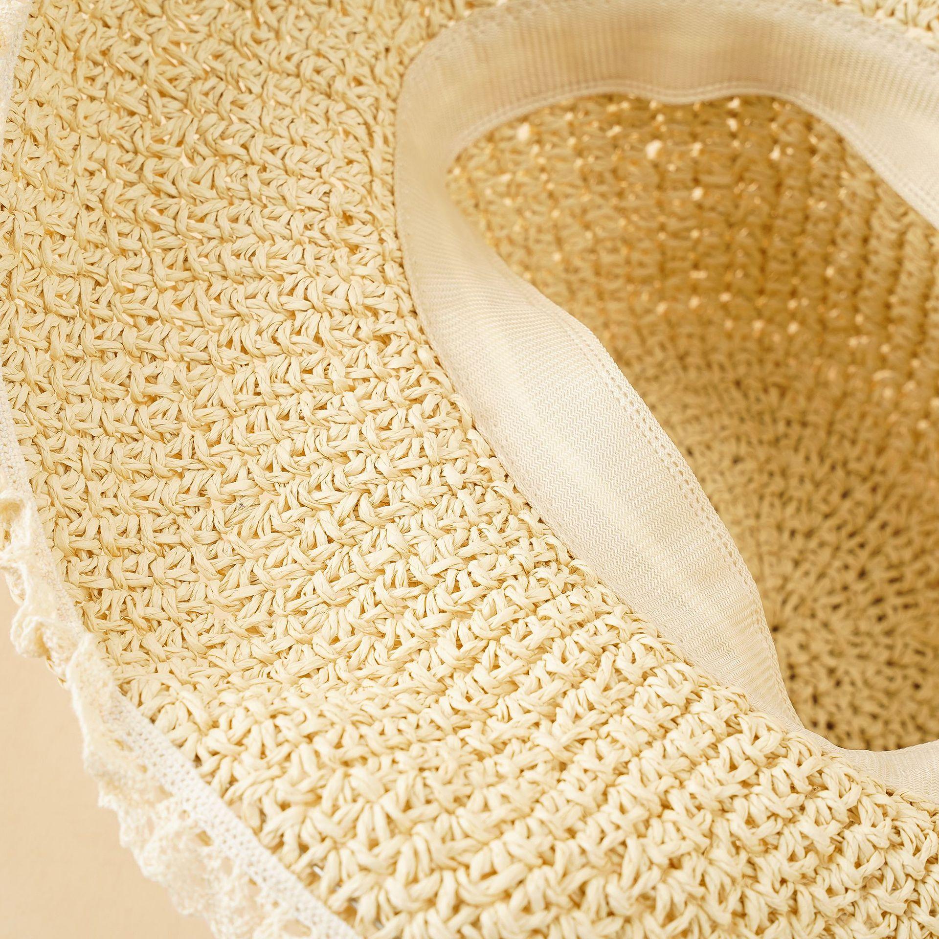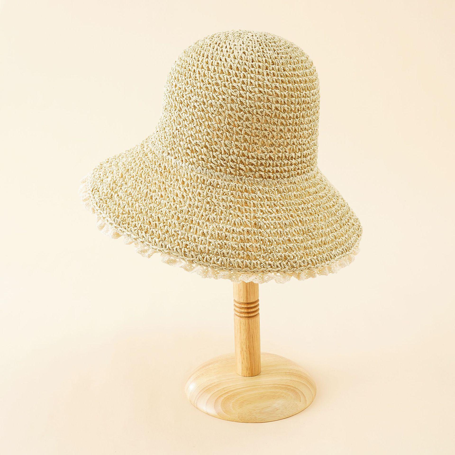 Nuevo sombrero de paja con encaje japonés para mujer, sombrero de lavabo fresco de verano para playa a prueba de sol, sombrero de paja a prueba de sol de moda de estilo coreano