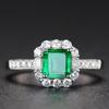 Nuevo Anillo Abierto de Lujo Grupo Zirconia Princesa Cuadrado Simulación Esmeralda Turmalina Anillo de Moda para Mujer