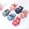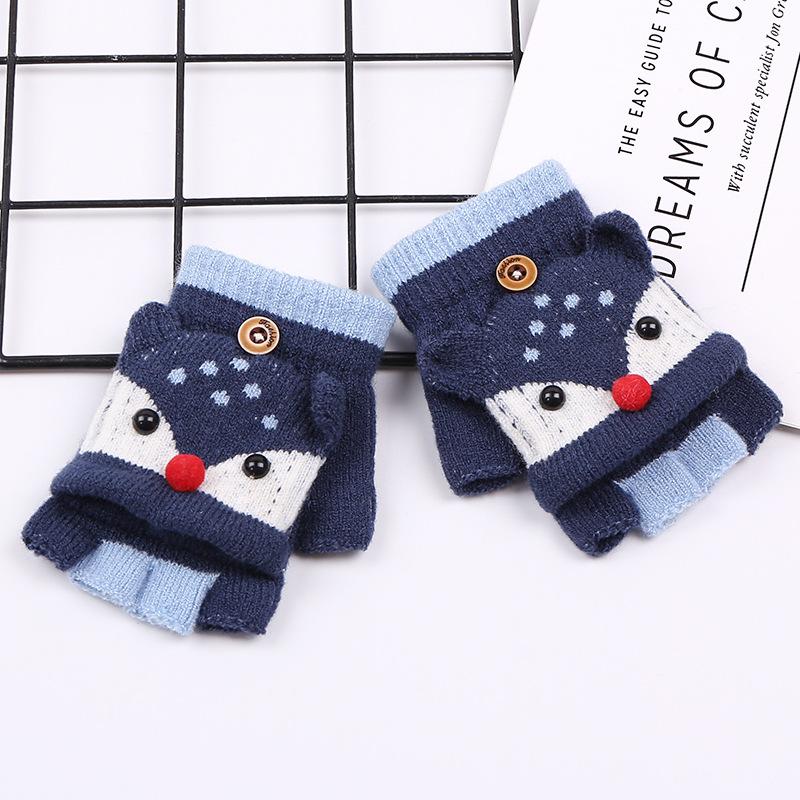 Guantes de invierno cálidos de medio dedo para niños, con bonitos dibujos de cachemira de punto, para niños y niñas.