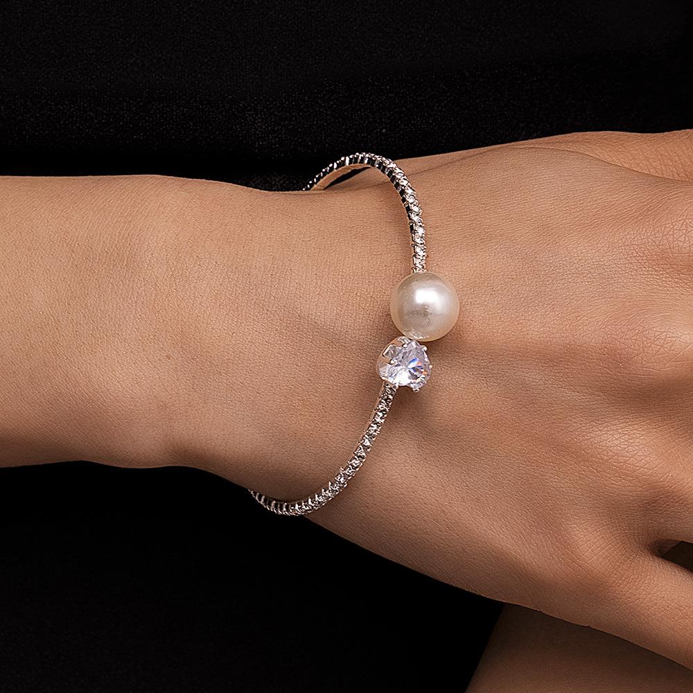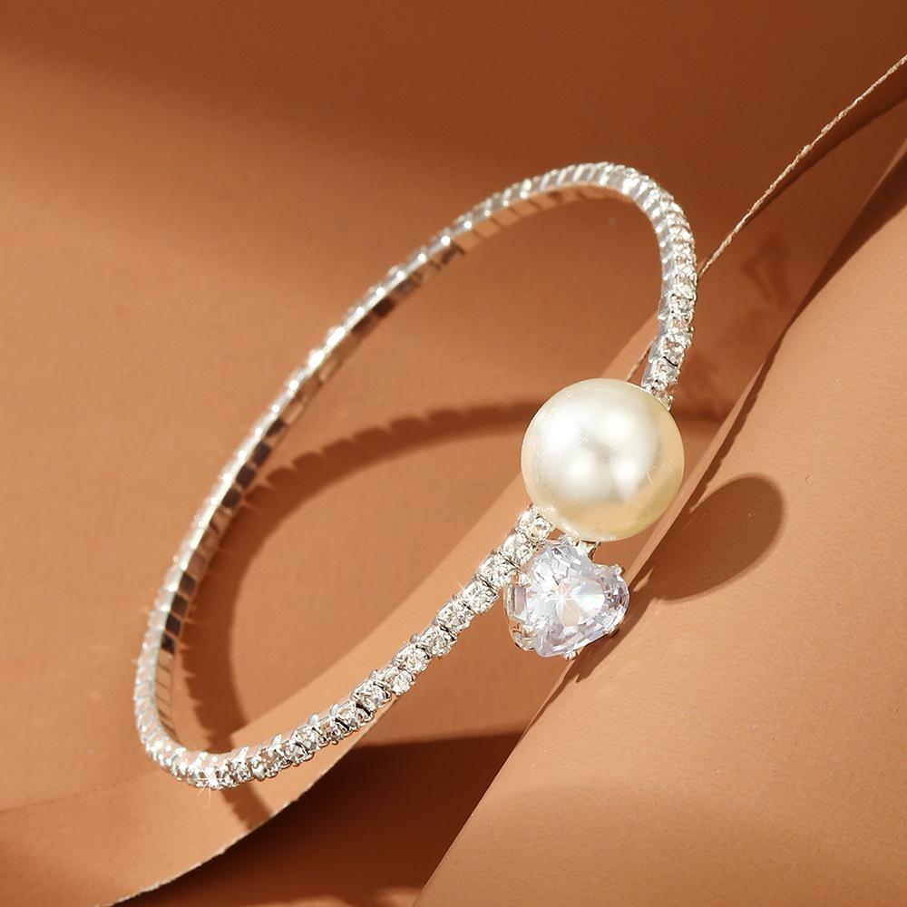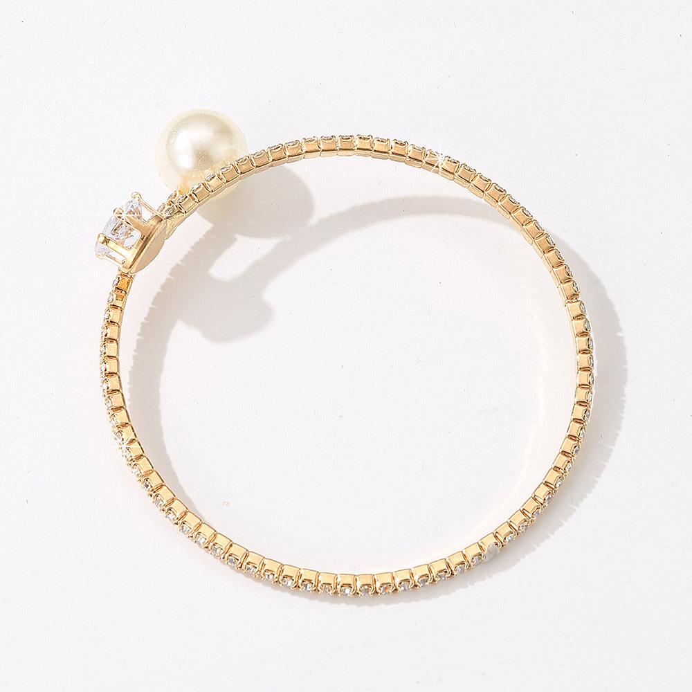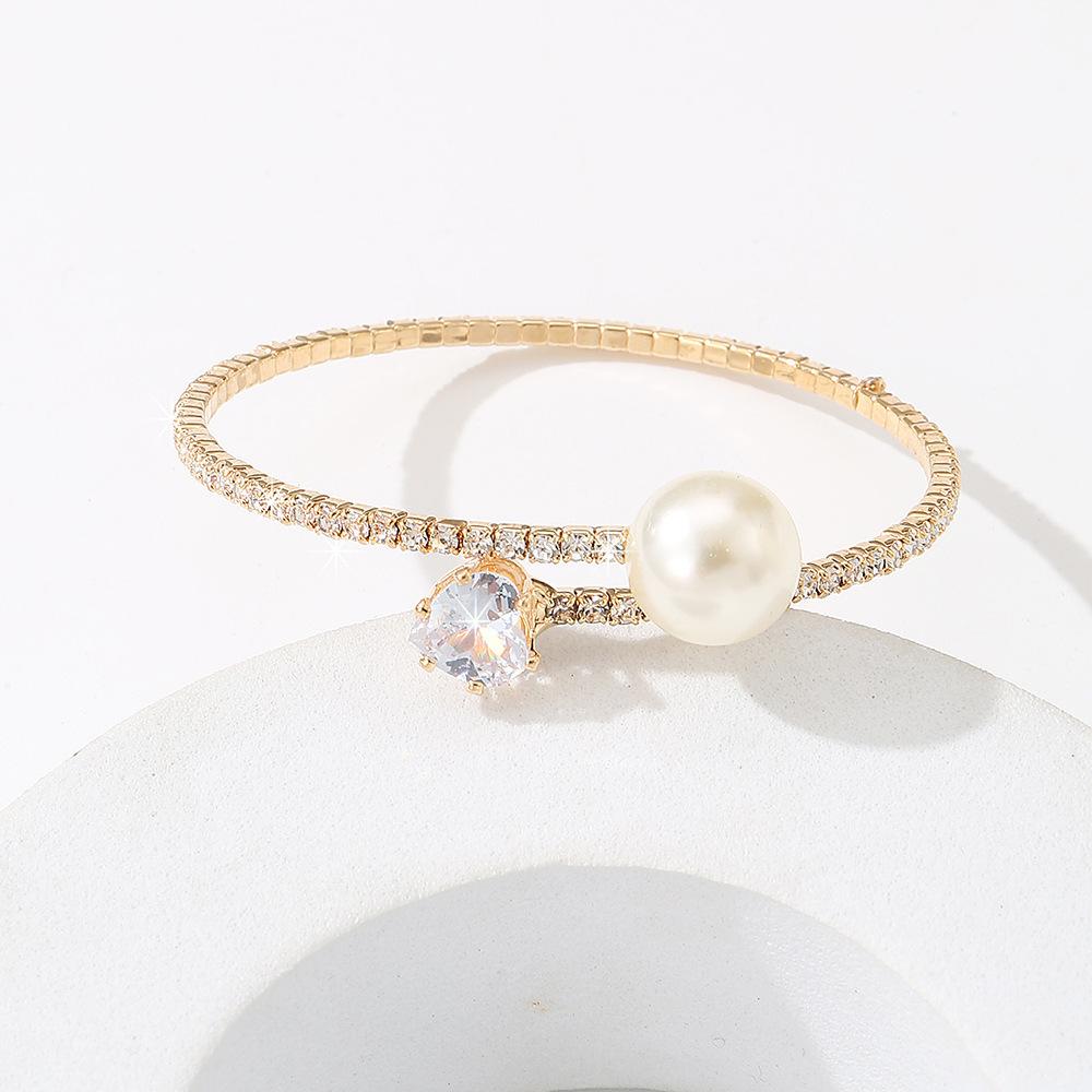 BZ1845 Pulsera Europea y Americana Transfronteriza Nueva Súper Flash Diamante Completo Perla Temperamento Combinable Pulsera Incrustada de Diamantes Joyería de Mano para Mujeres