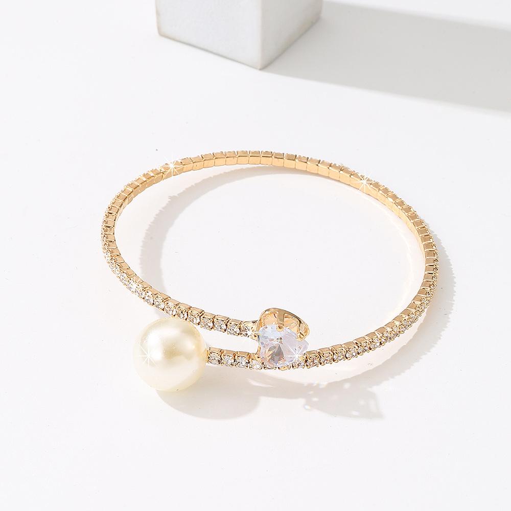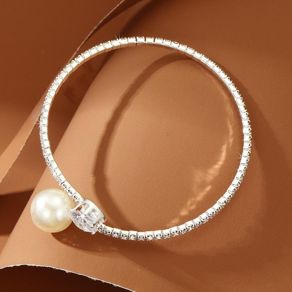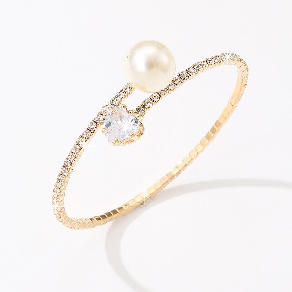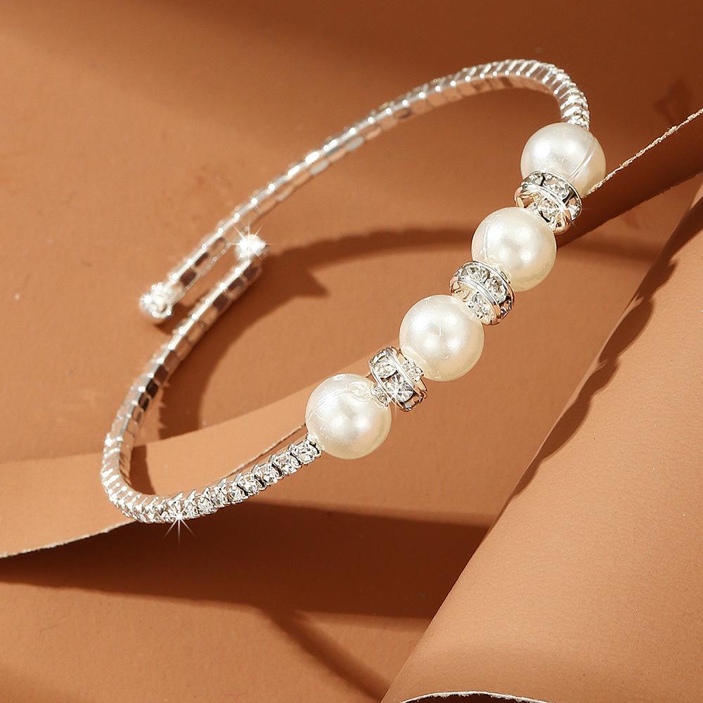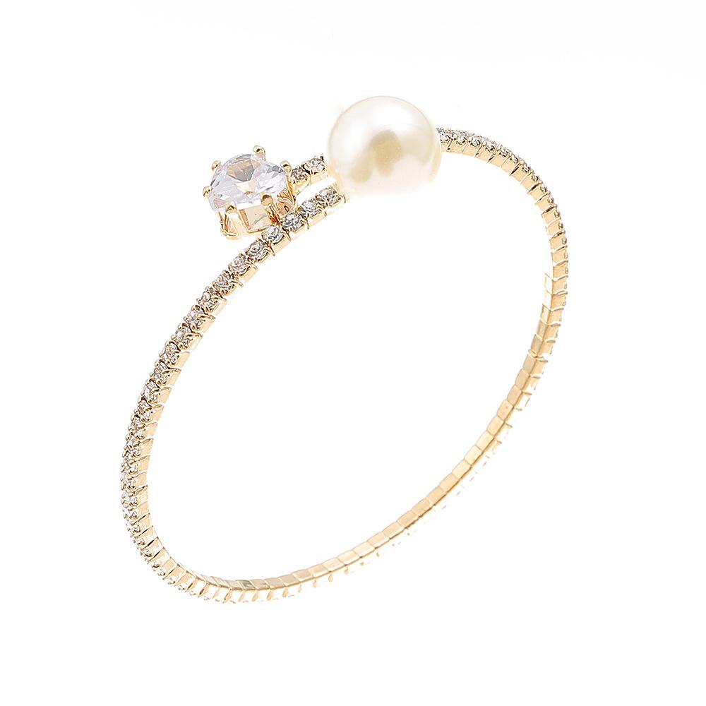 BZ1845 Pulsera Europea y Americana Transfronteriza Nueva Súper Flash Diamante Completo Perla Temperamento Combinable Pulsera Incrustada de Diamantes Joyería de Mano para Mujeres