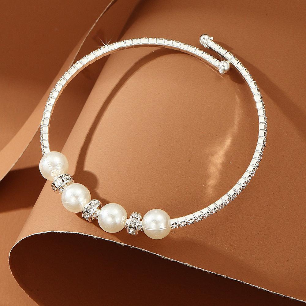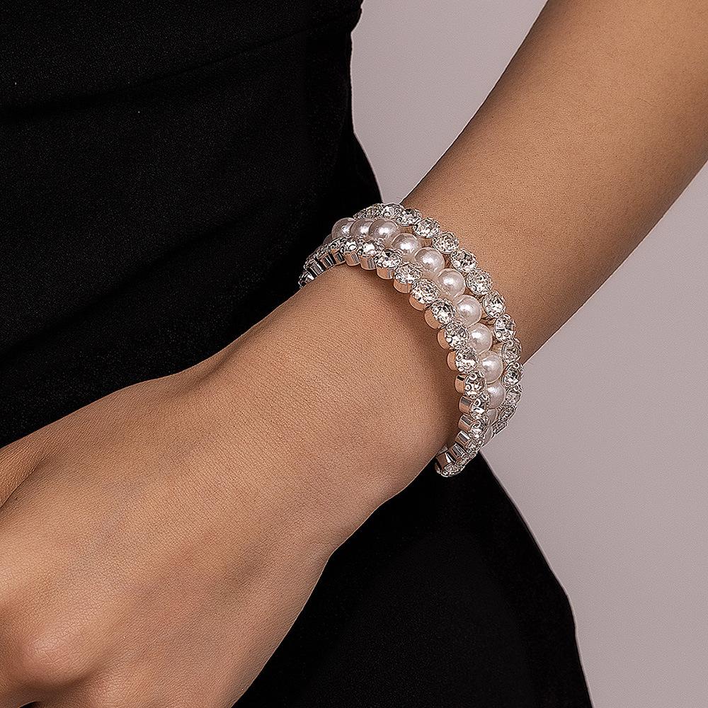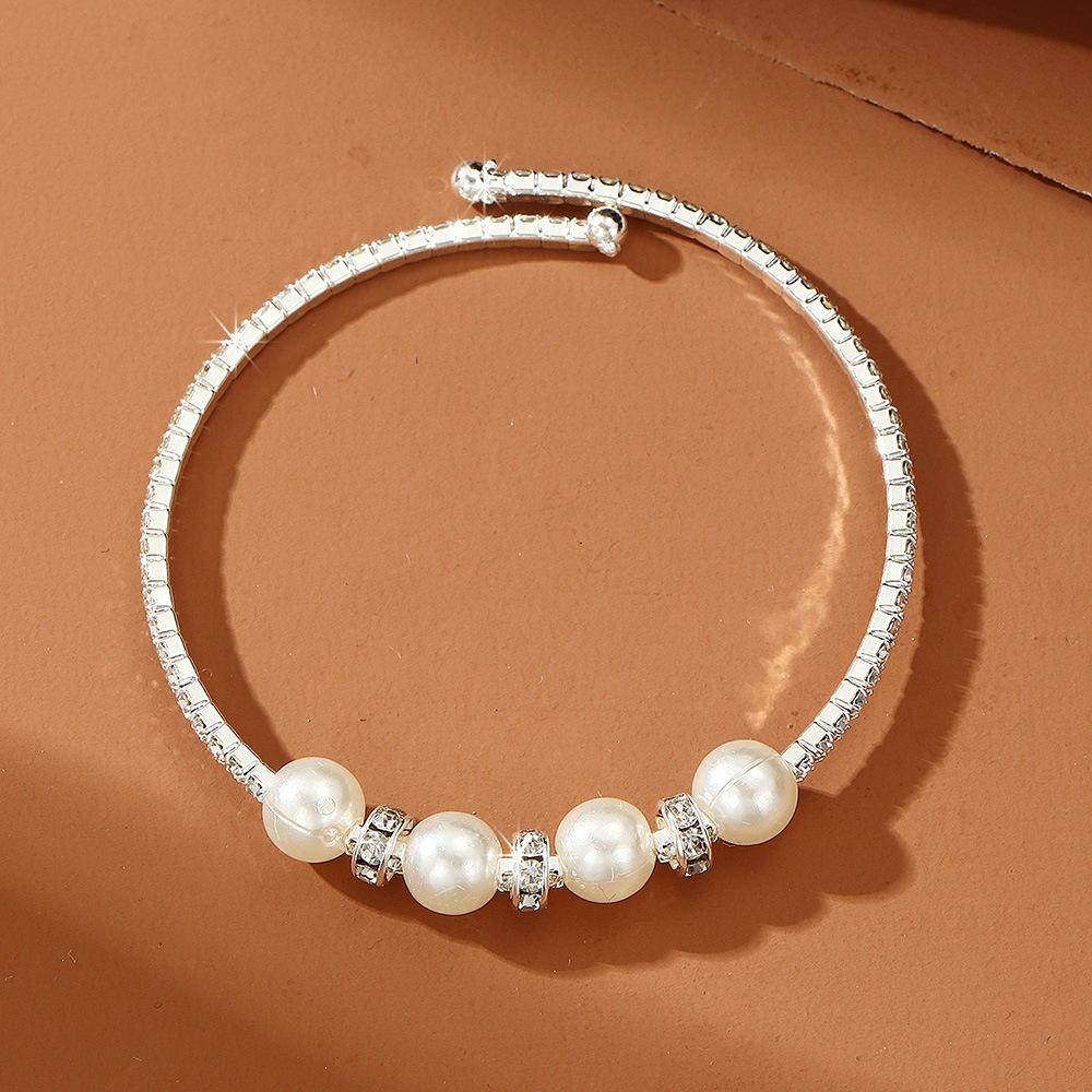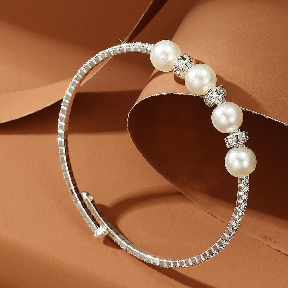 BZ1845 Pulsera Europea y Americana Transfronteriza Nueva Súper Flash Diamante Completo Perla Temperamento Combinable Pulsera Incrustada de Diamantes Joyería de Mano para Mujeres