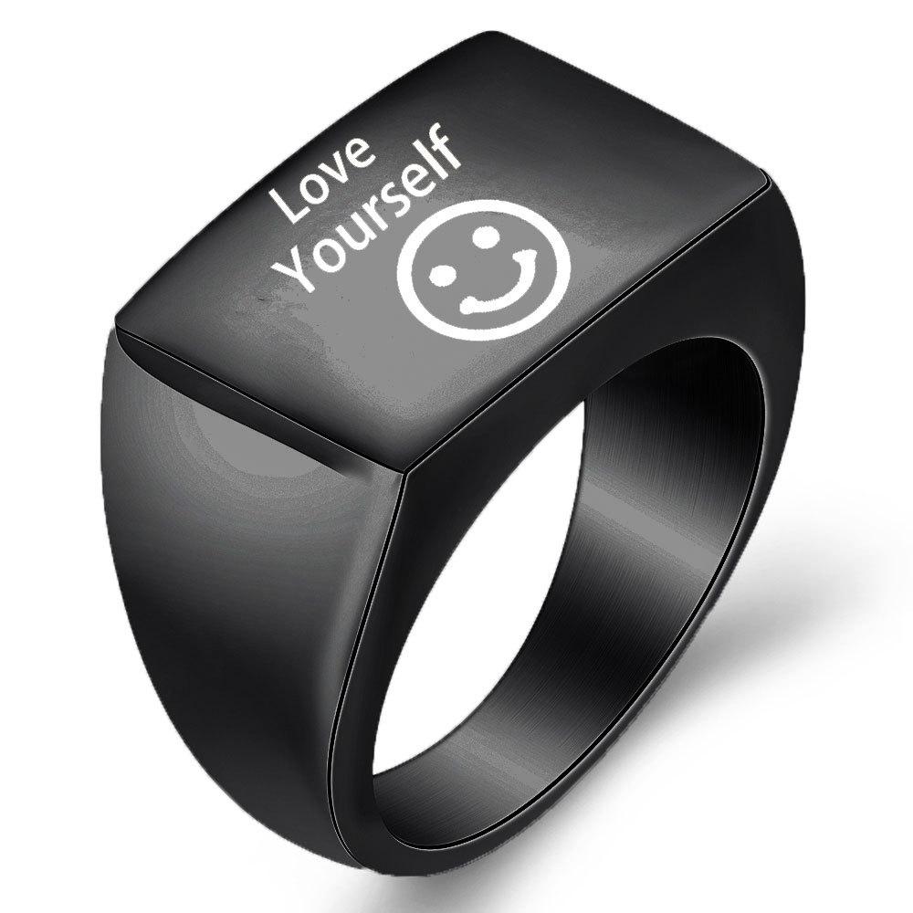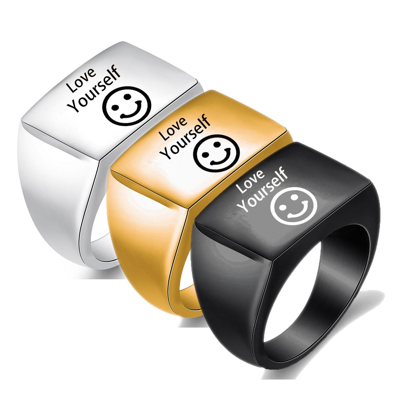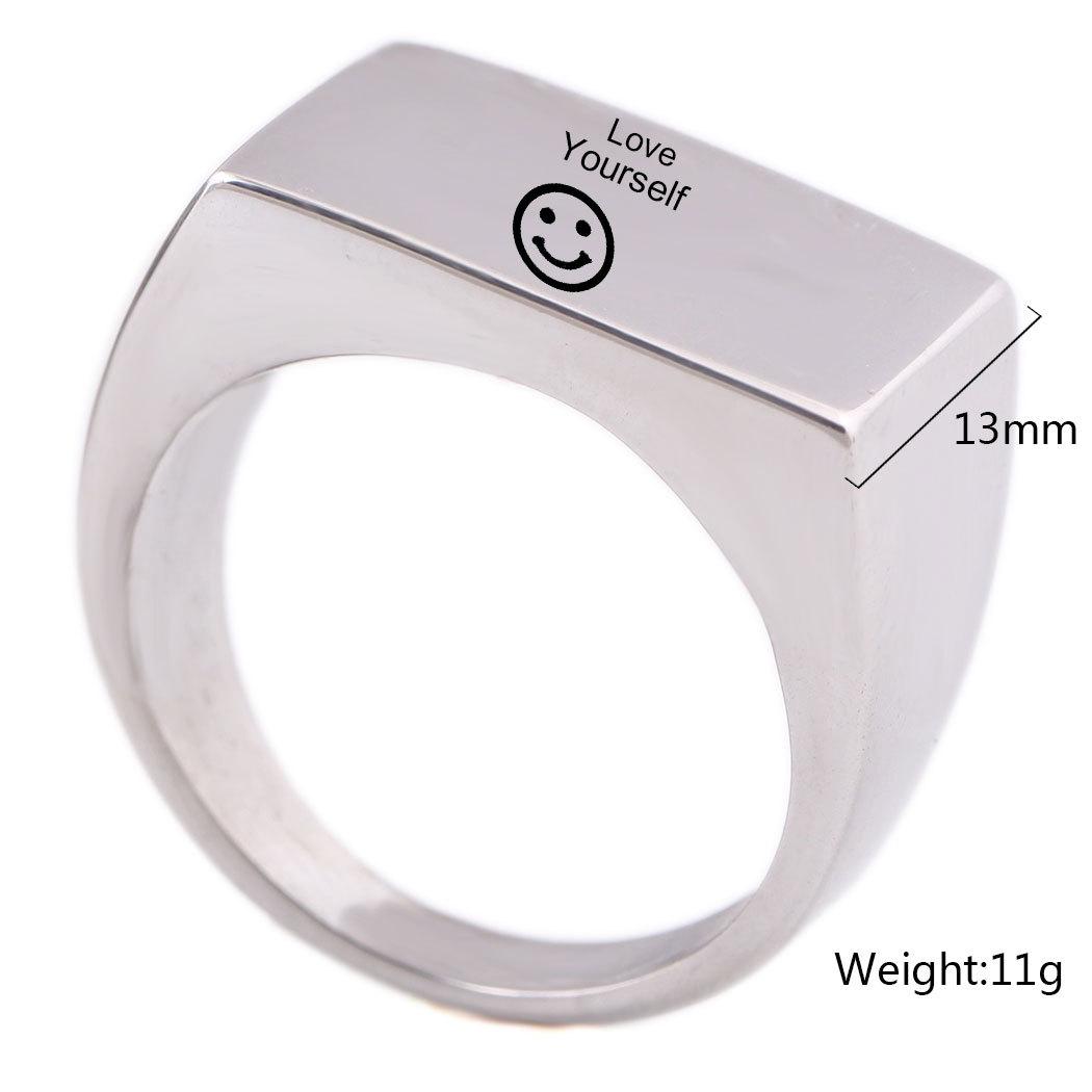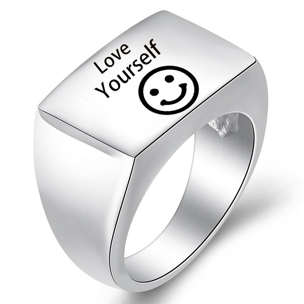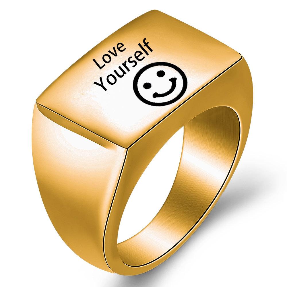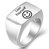Anillo Rectangular Europeo y Americano de 13 mm Inglés Simple Ama tu Propia Cara Sonriente Acero de Titanio Anillo de Venta Caliente Anillo Versátil Brillante Venta al por Mayor