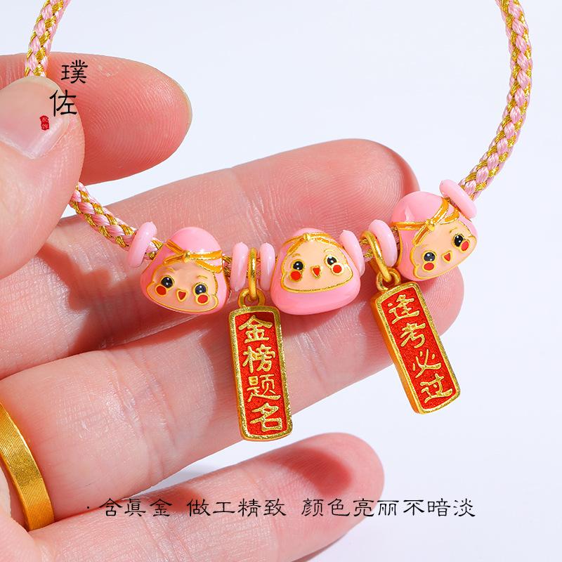 240-19 pink zongzi baby through hole 1, 224-17 to be No. 1 title pendant 1, 2-4-73-5 powder gold open steel wi...