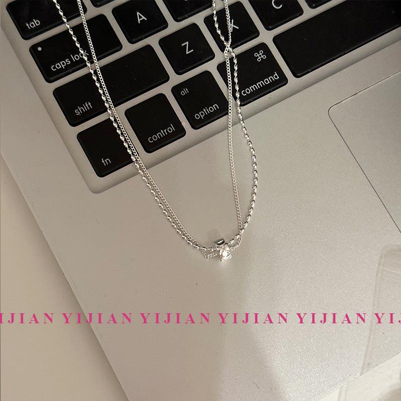 Collar de círculo de plata para mujer, marca nicho coreana, con doble capa, nueva tendencia 2023, cadena de clavícula versátil retro.