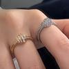 Anillo Nicho de Doble Capa de Resina con Circón Plateado con Apertura Europea y Americana, Anillo de Pulsera de Palacio Retro con Diseño para Mujer
