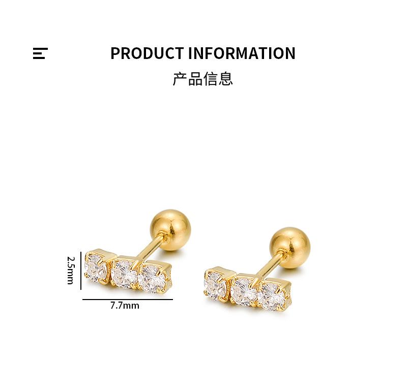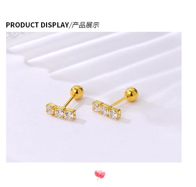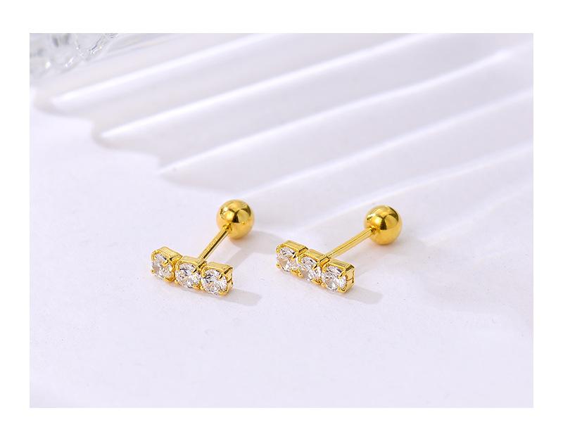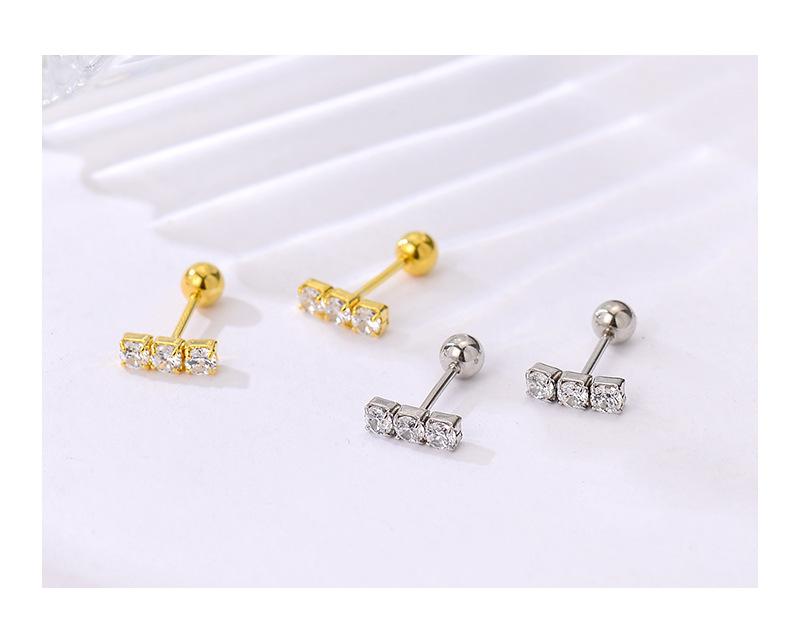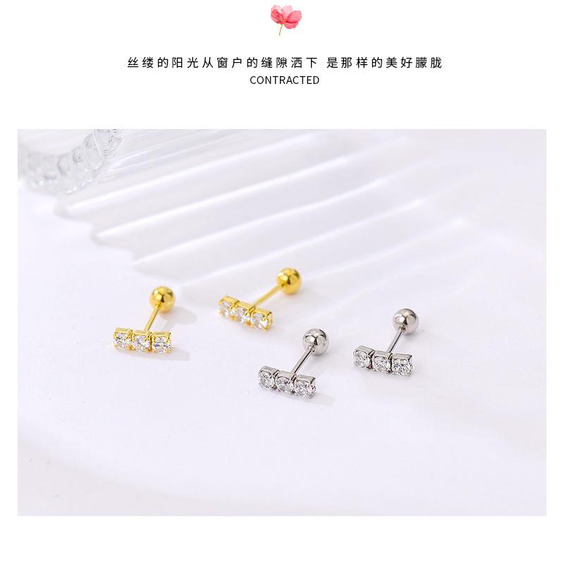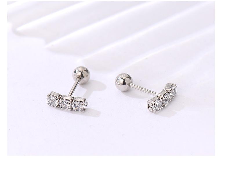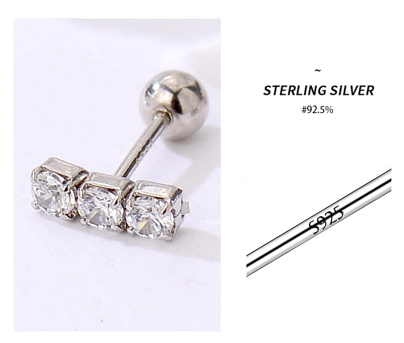 Pendientes de plata S925 para mujer, con una sola palabra, con tornillos de diamante, con agujeros para las orejas, accesorios de moda sencillos y combinables.