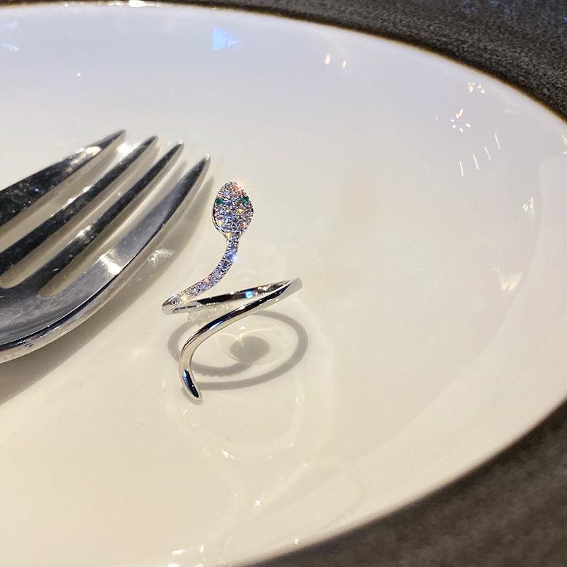 Anillo Enrollado con Diseño Nicho Estilo Frío Circonio Micro-Incrustado Forma de Serpiente Anillo Abierto Nuevo 2025 Anillo de Serpiente Pequeña