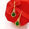 Aretes de Joyería de Trébol de Cuatro Hojas de Oro de Arena de Vietnam Gancho para la Oreja Chapado en Oro Vintage Cuentas de Transferencia Borla Larga Elegantes Pendientes de Botón para Mujer