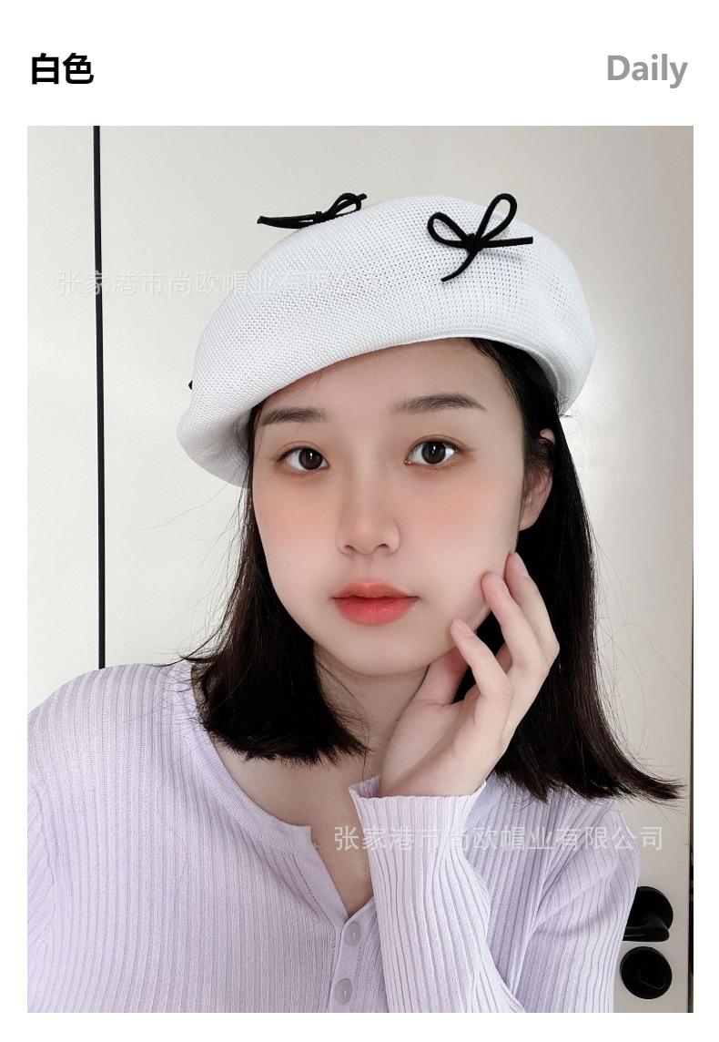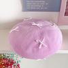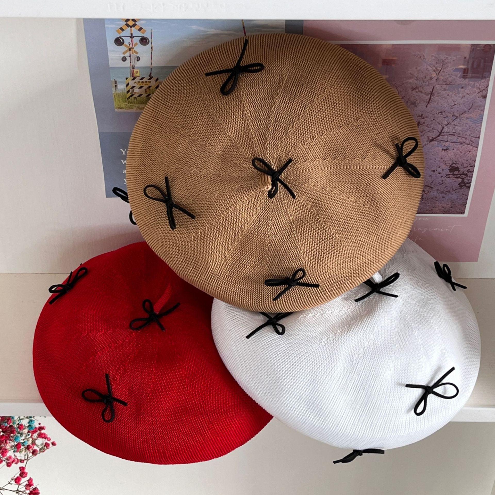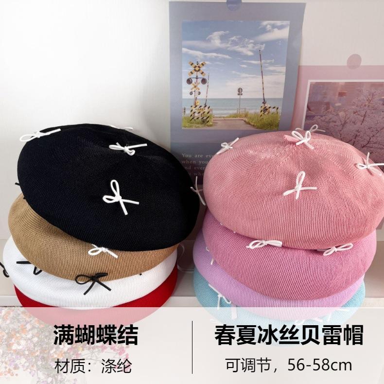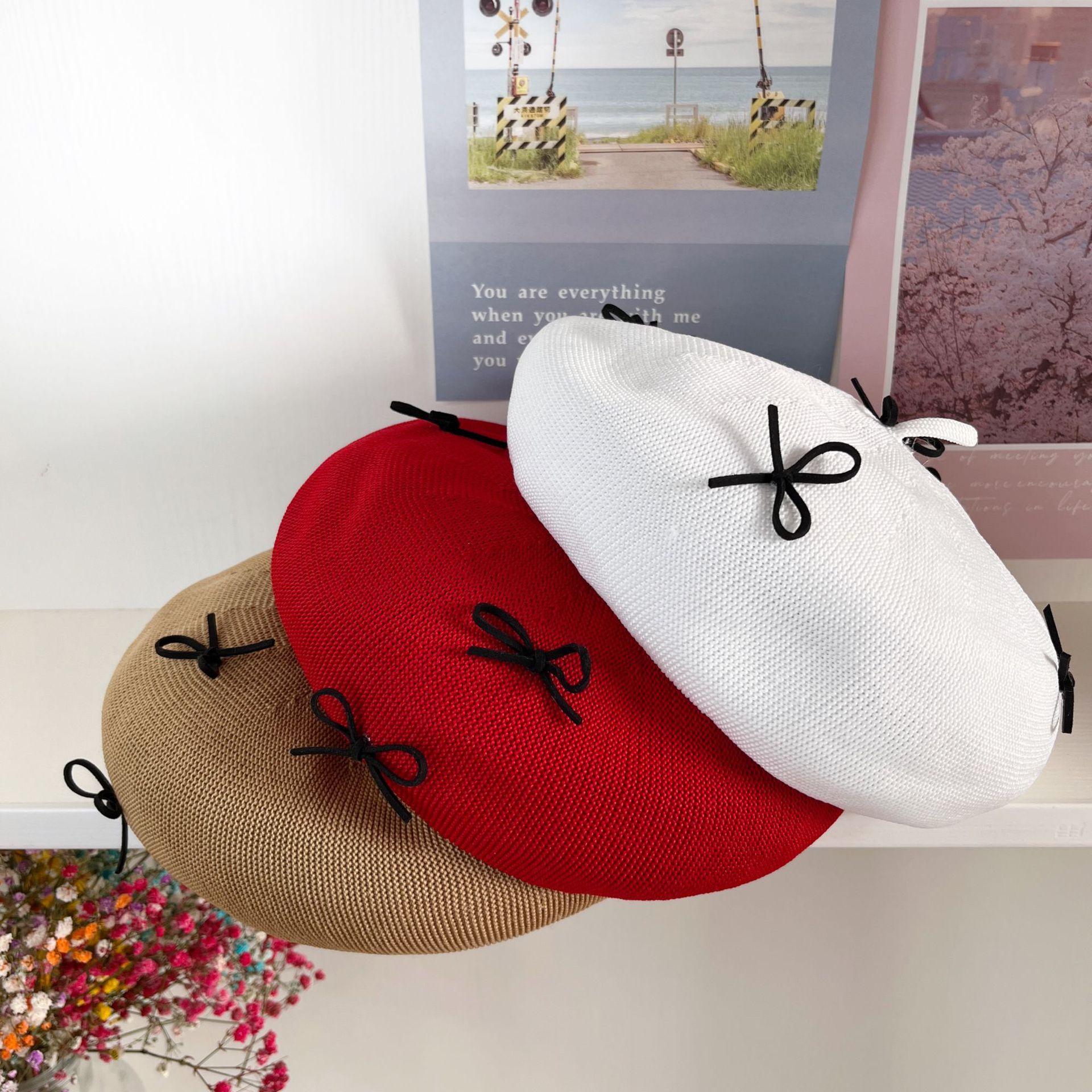 Nuevo sombrero de pintor de malla tejida transpirable ajustable para mujer, dulce lazo coreano, boina de seda helada para primavera y verano