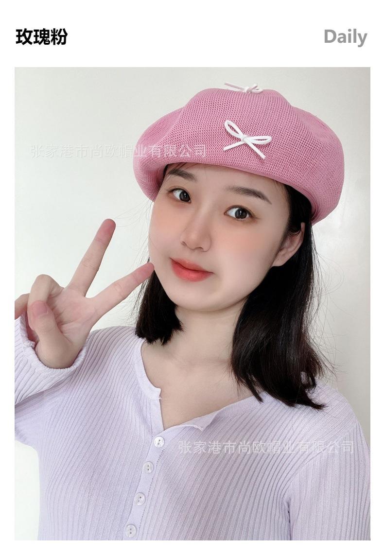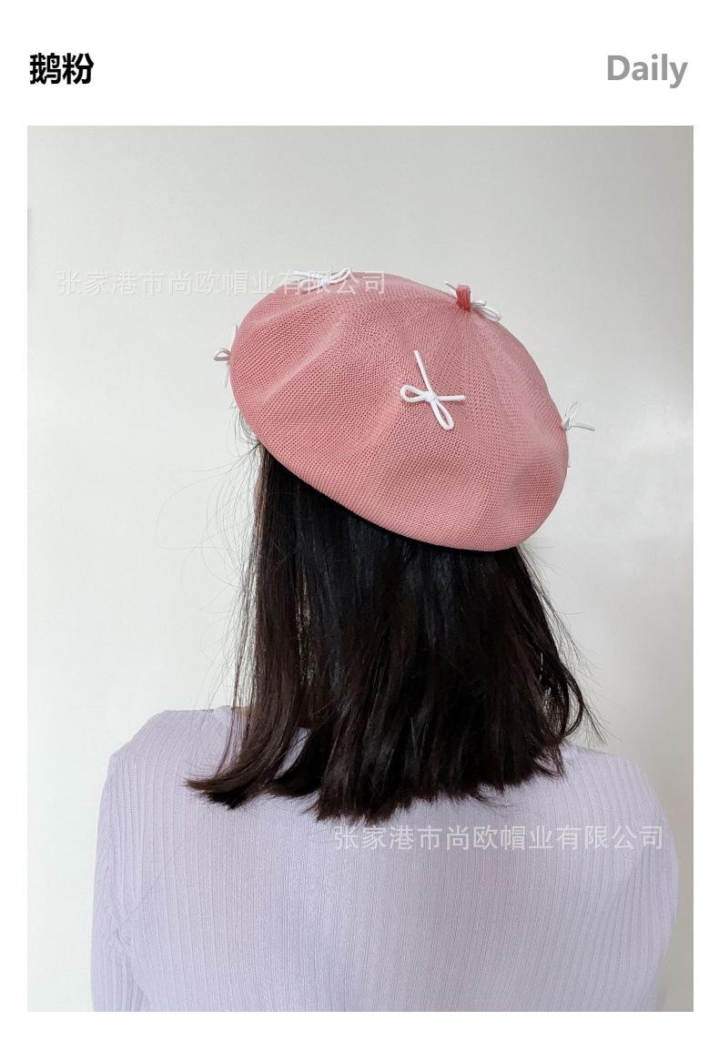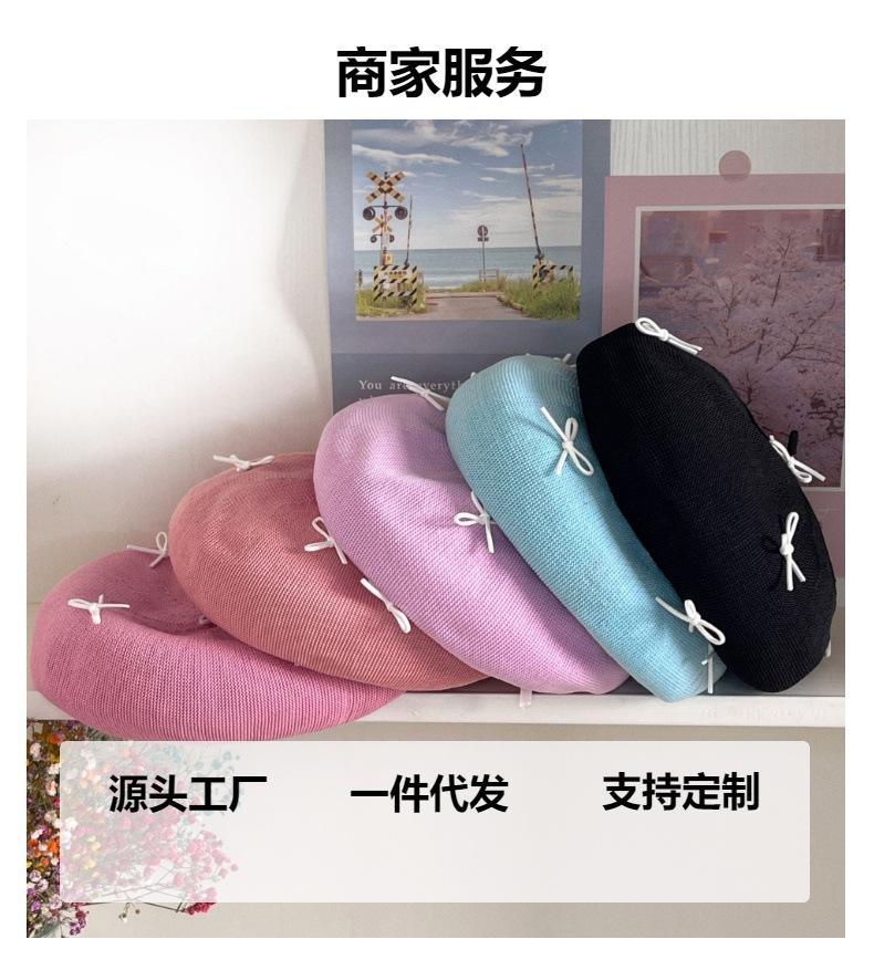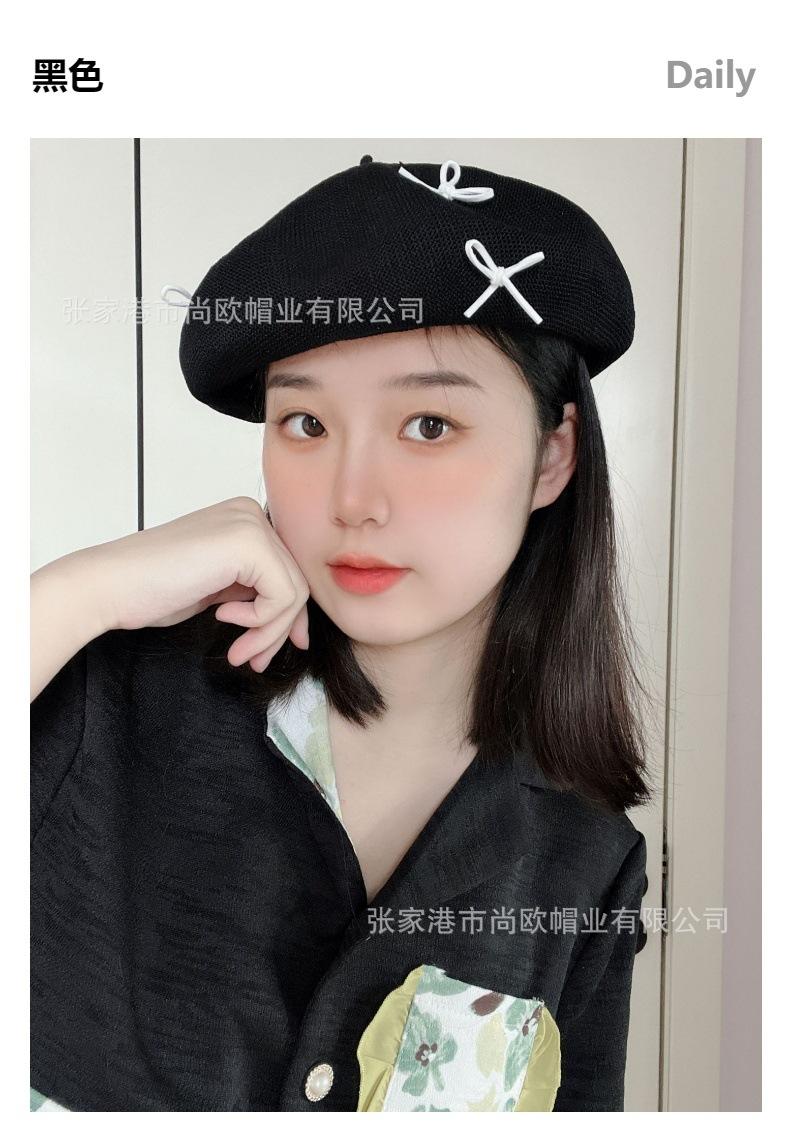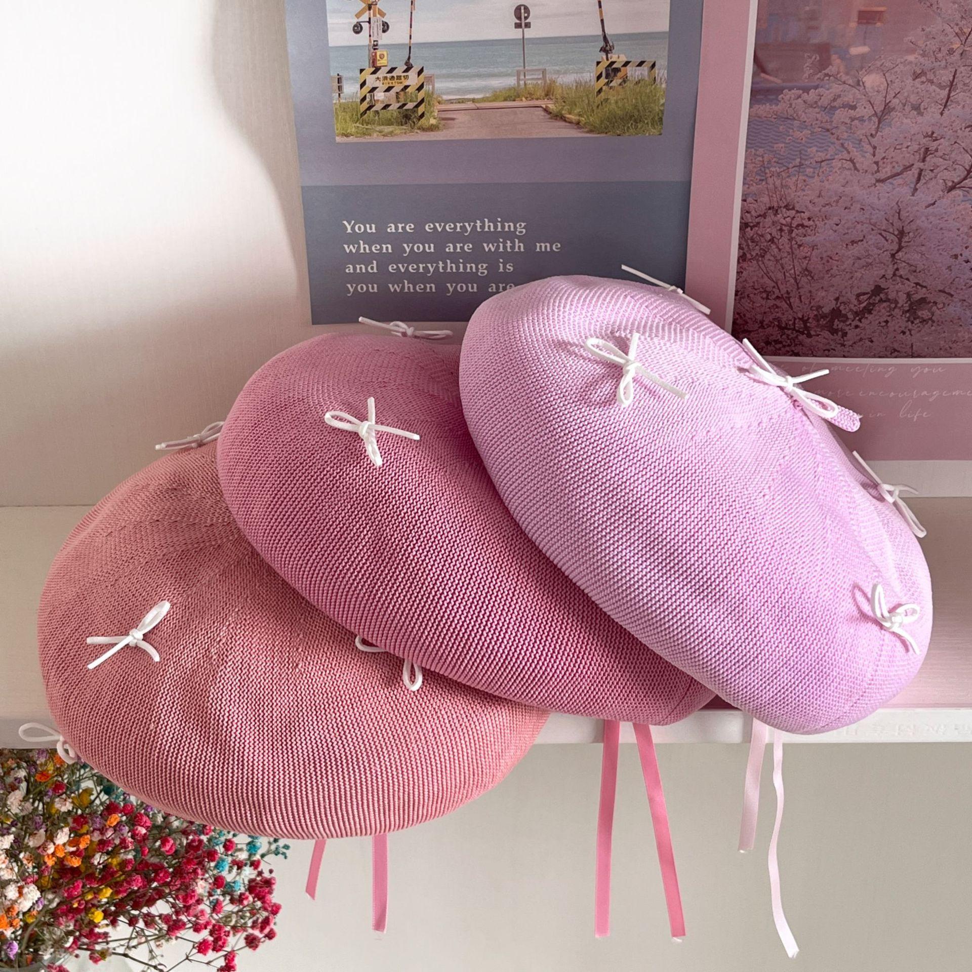 Nuevo sombrero de pintor de malla tejida transpirable ajustable para mujer, dulce lazo coreano, boina de seda helada para primavera y verano