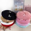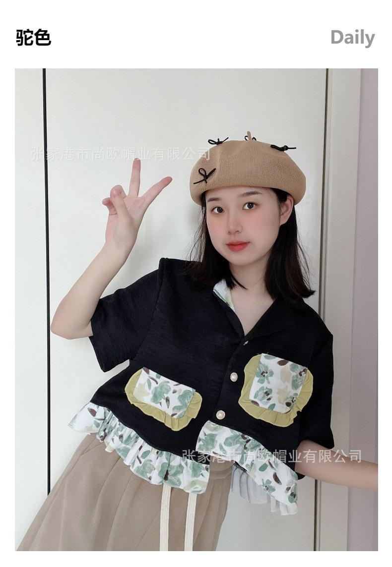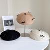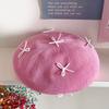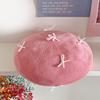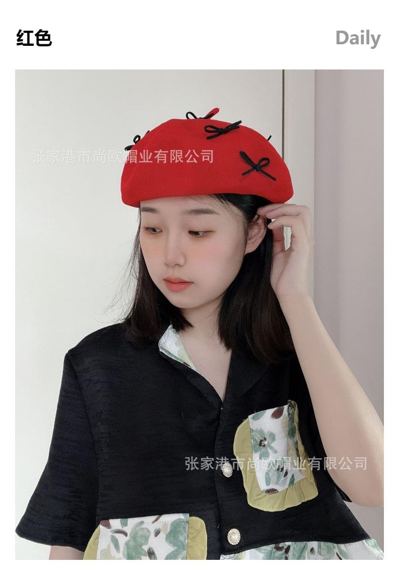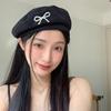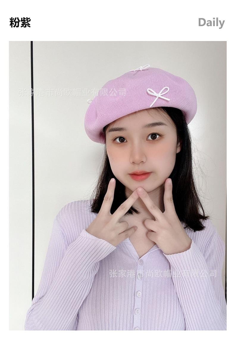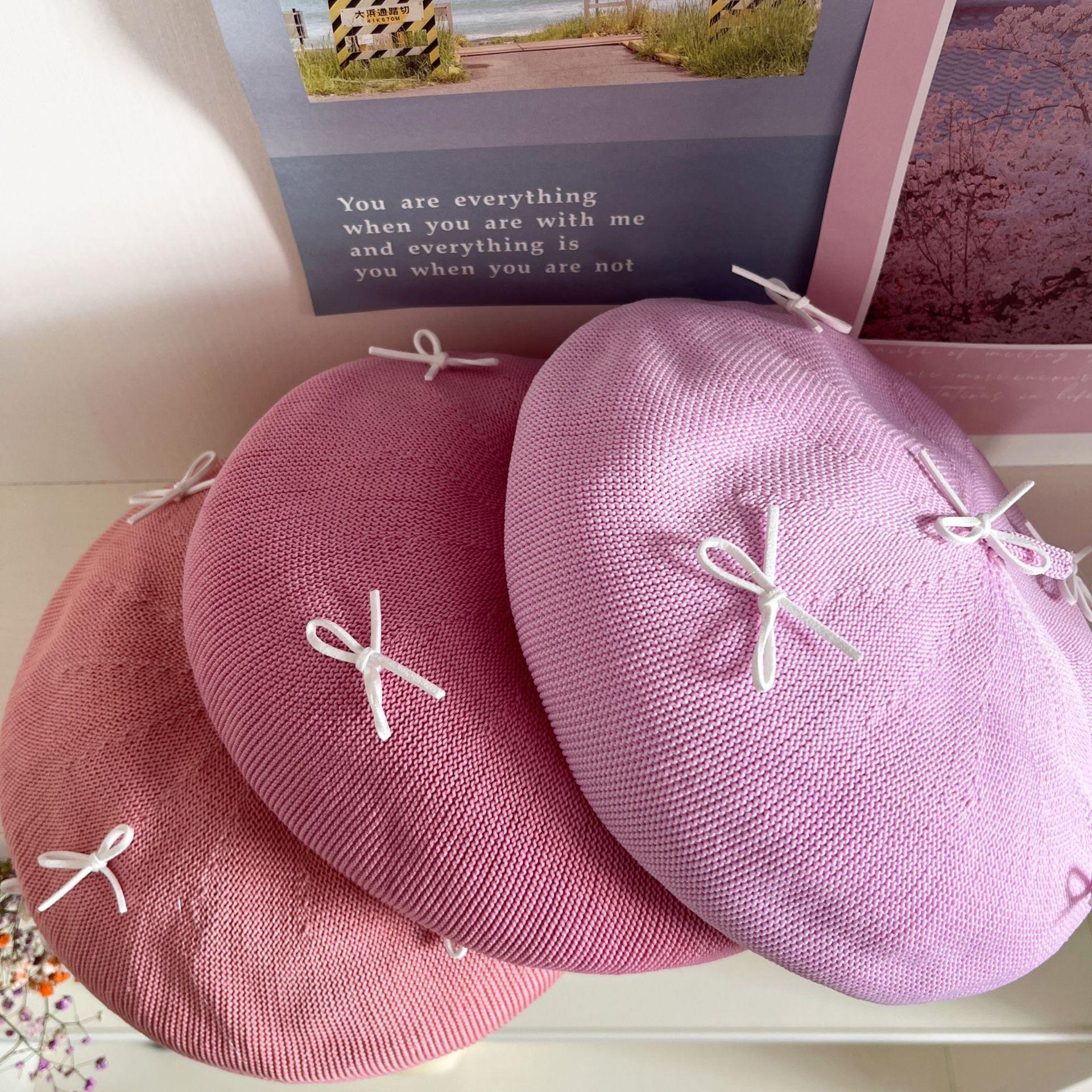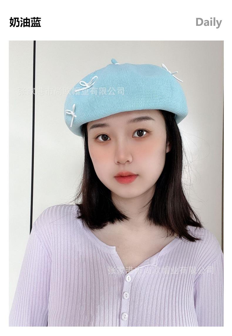 Nuevo sombrero de pintor de malla tejida transpirable ajustable para mujer, dulce lazo coreano, boina de seda helada para primavera y verano