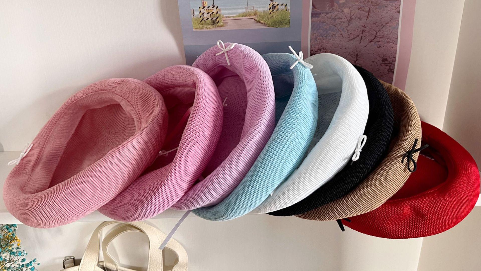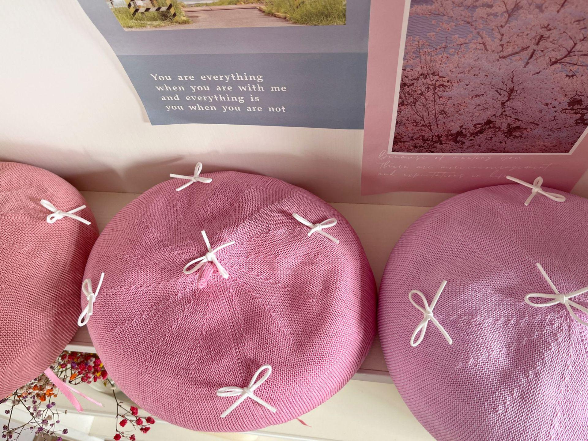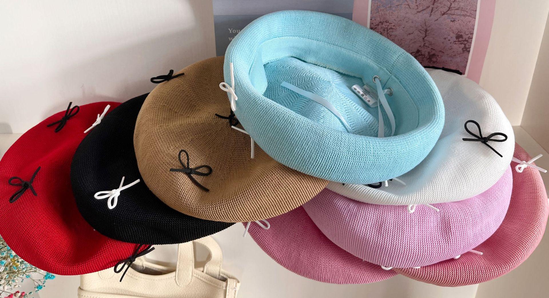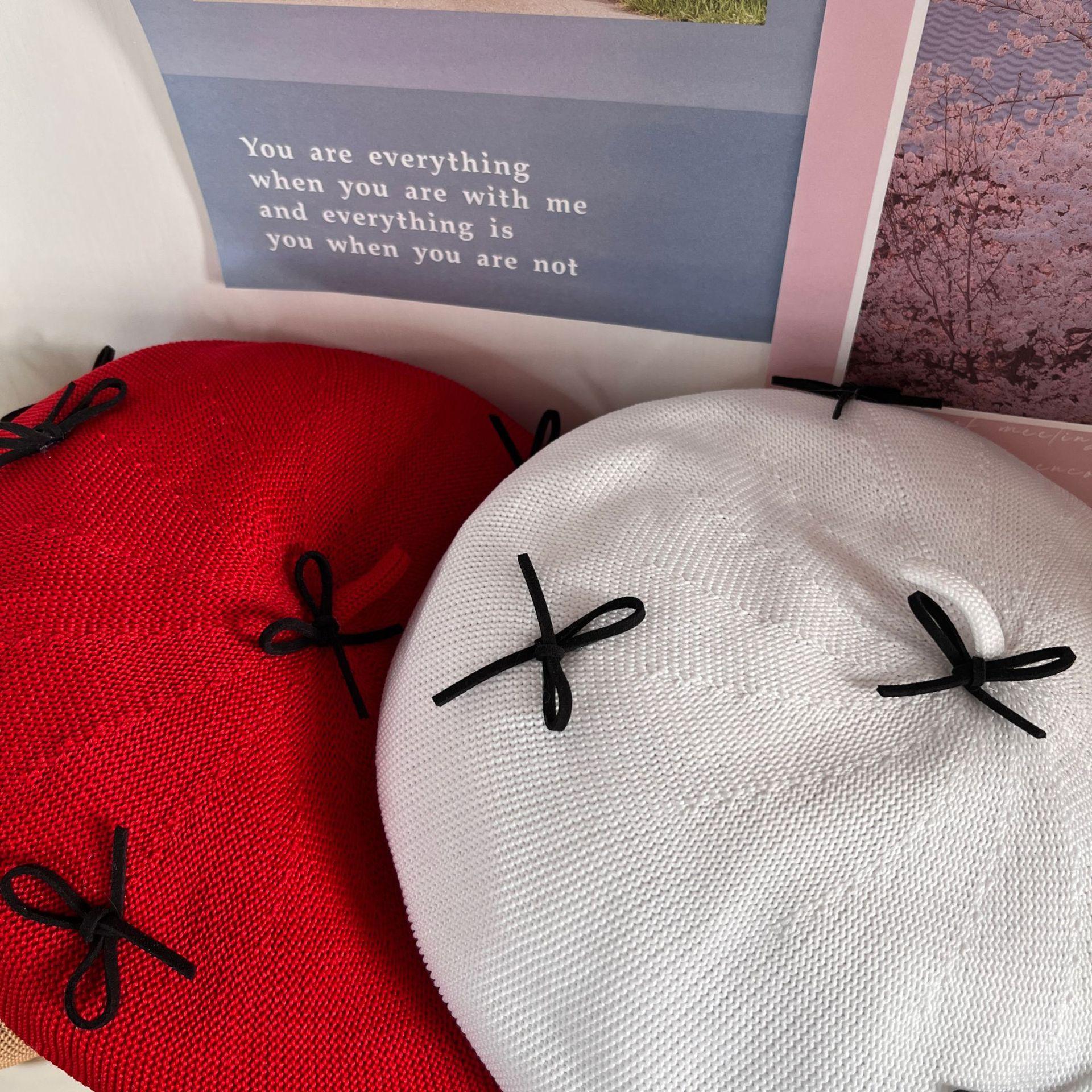 Black Summer beret + white bow, Cream blue summer beret + white bow, Pink purple summer beret + white bow, Goo...