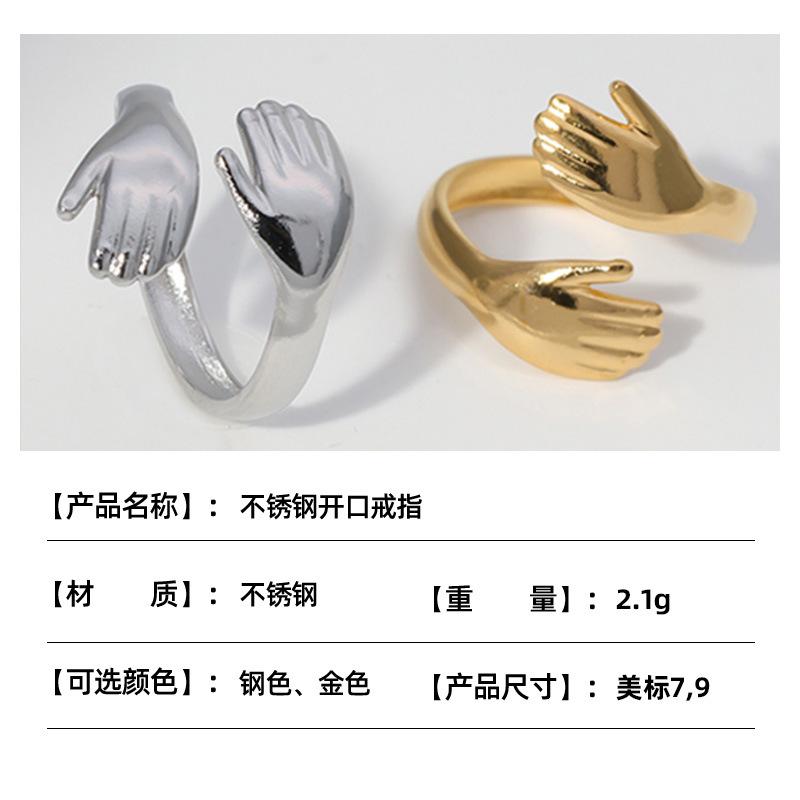 Anillo de acero de titanio con apertura transfronteriza entre Europa y Estados Unidos, anillo de hip hop con personalidad exagerada y abrazo femenino, anillo de acero inoxidable al por mayor