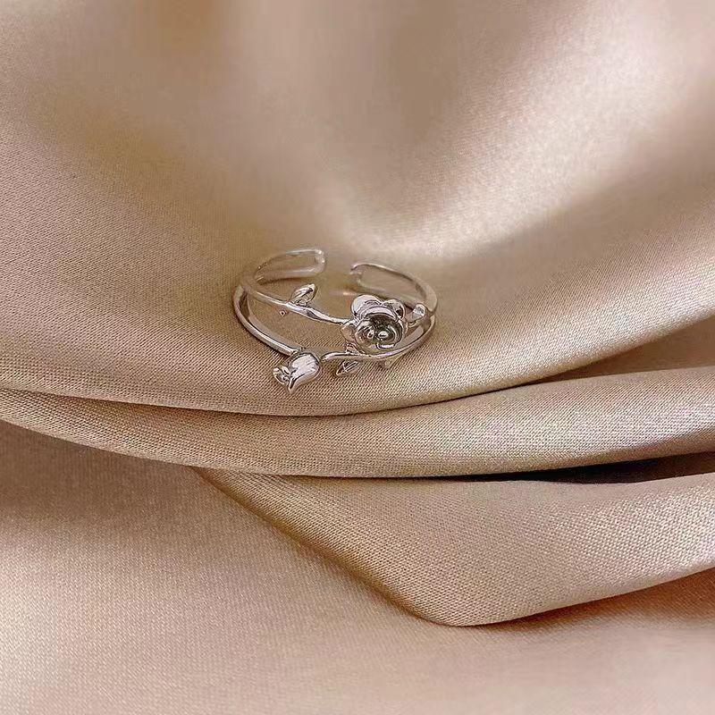 Anillo Abierto de Rosa de Doble Capa Ins Simple Elegante Diseño Nicho Anillo de Dedo Nueva Moda Combinable Anillo Abierto