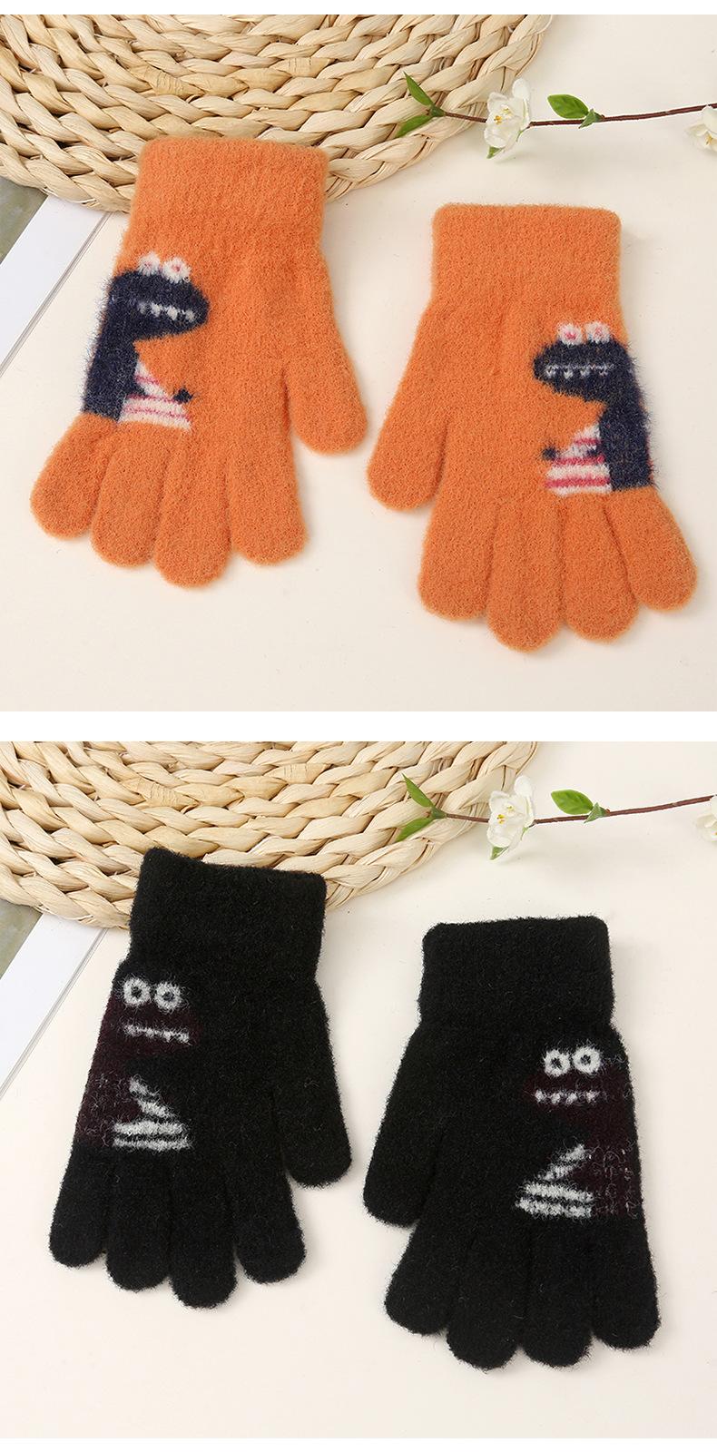 Guantes de invierno de cinco dedos con dibujos animados para niños, de felpa tejida, para escuela primaria, bonitos y cálidos, al por mayor