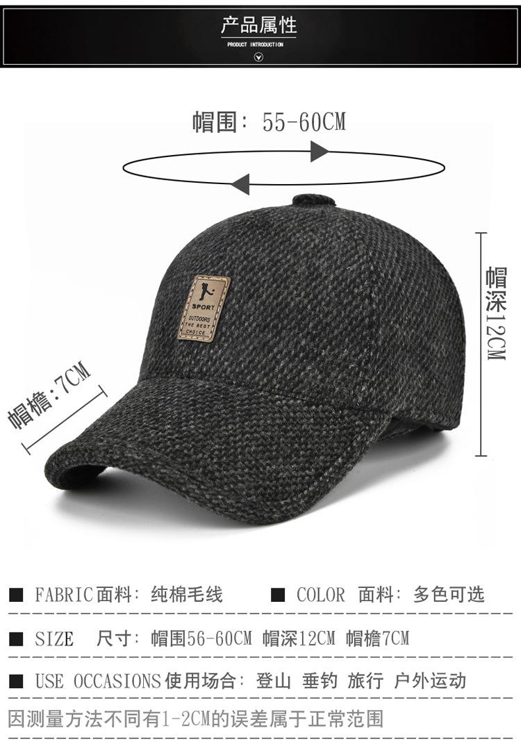 Gorra de algodón de invierno para hombre, gorra de béisbol deportiva de moda para exteriores, gorra de lana cálida informal coreana para otoño e invierno.