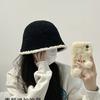 Sombrero de cubo negro para mujer ins celebridad de Internet sombrero de cuenca tejido otoño e invierno estilo japonés versátil que hace que la cara parezca pequeña sombrero de pescador que cubre la cara