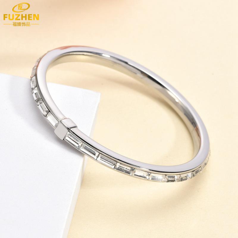 Pulsera delgada de acero de titanio galvanizado, pulsera abierta en forma de C de acero inoxidable de venta caliente europea y americana, geométrica poligonal con diamantes lisos