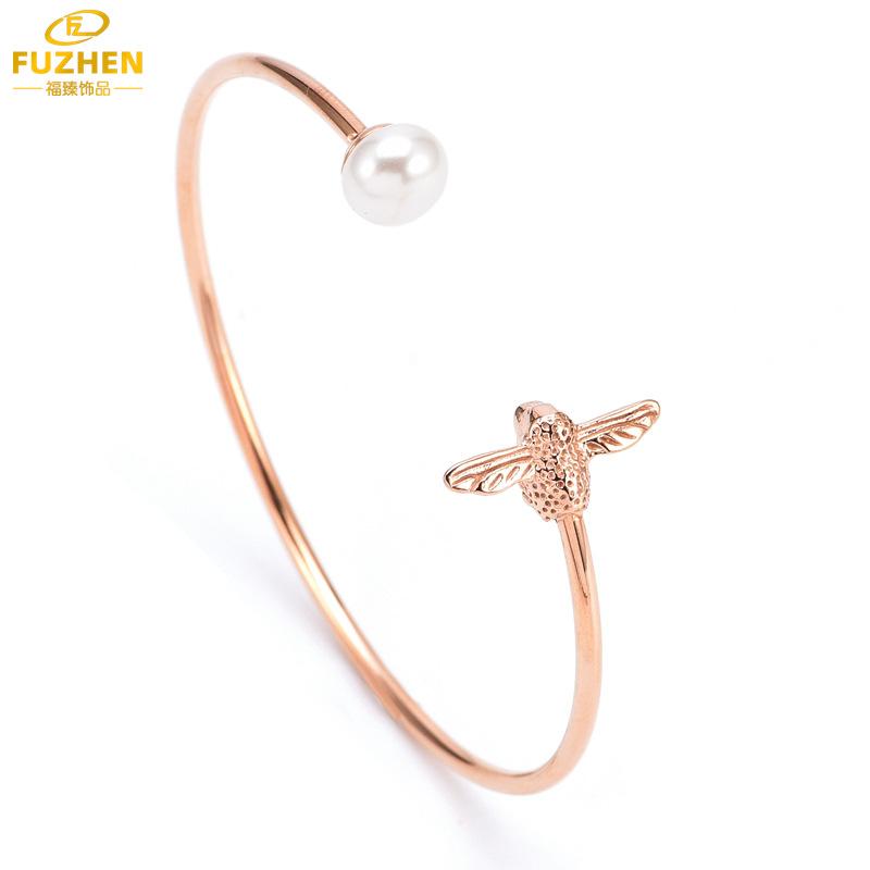 Joyería de acero inoxidable de personalidad simple moda europea y americana pulsera de insecto linda pulsera abierta en C de abeja pequeña