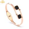 Joyería de Moda de Acero Inoxidable con Gema Pulsera en Forma de C Abierta Oro Rosa Malaquita para Pareja con Gema Incrustada Pulsera de Acero de Titanio