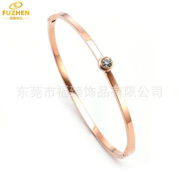 Fábrica fuente acero inoxidable joyería de mano al por mayor moda simple incrustado gema sello cerrado círculo único pulsera redonda