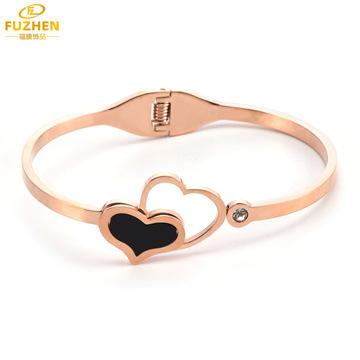 Pulsera combinada de acero inoxidable con cabeza redonda, incrustaciones de diamantes, hueca con forma de corazón de melocotón, amor, nácar, corazón a corazón, concha, diamante