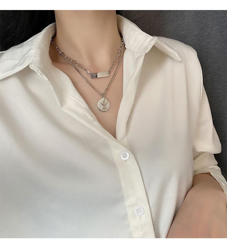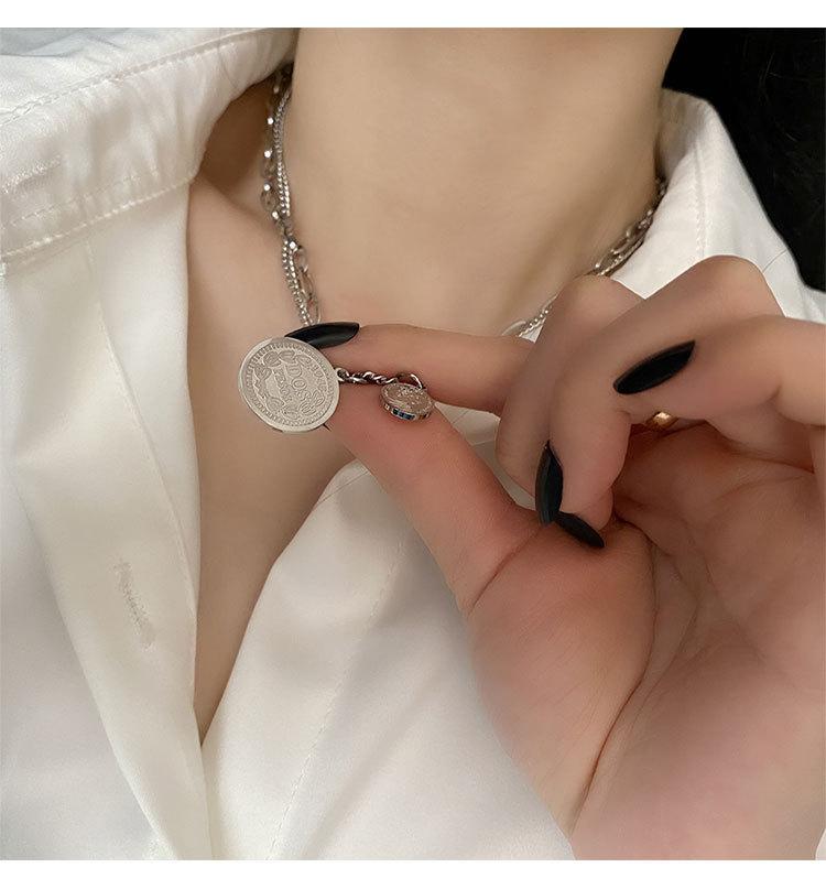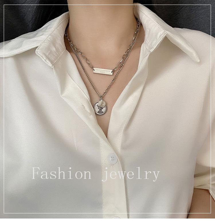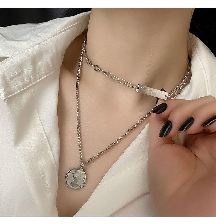 Collar de acero de titanio con diseño de celebridad de Internet para mujer, colgante con borla y cara sonriente de amor, estilo hip-hop, cadena de suéter sencilla.