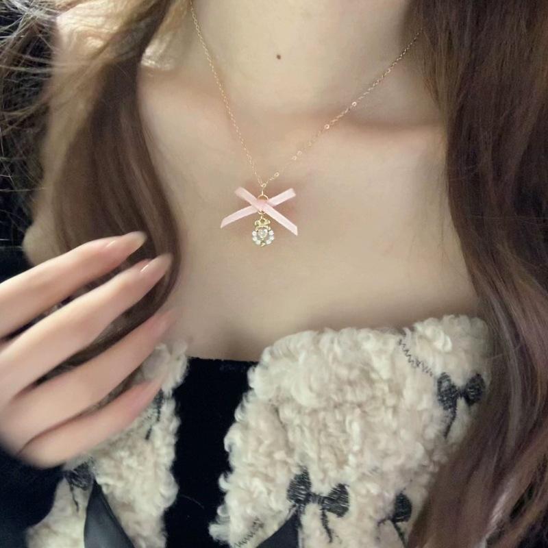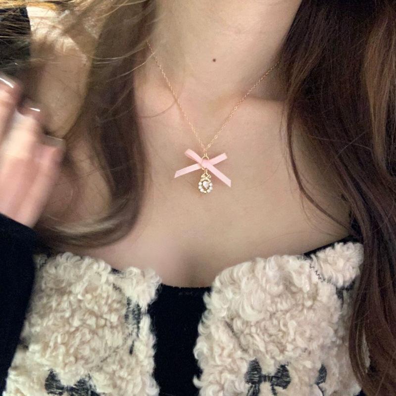 Collar de Perlas con Lazo de Amor Estilo Verano Chica Dulce Diseño Nicho Lujo Ligero Alta Gama Apilado Cadena Clavícula para Mujer