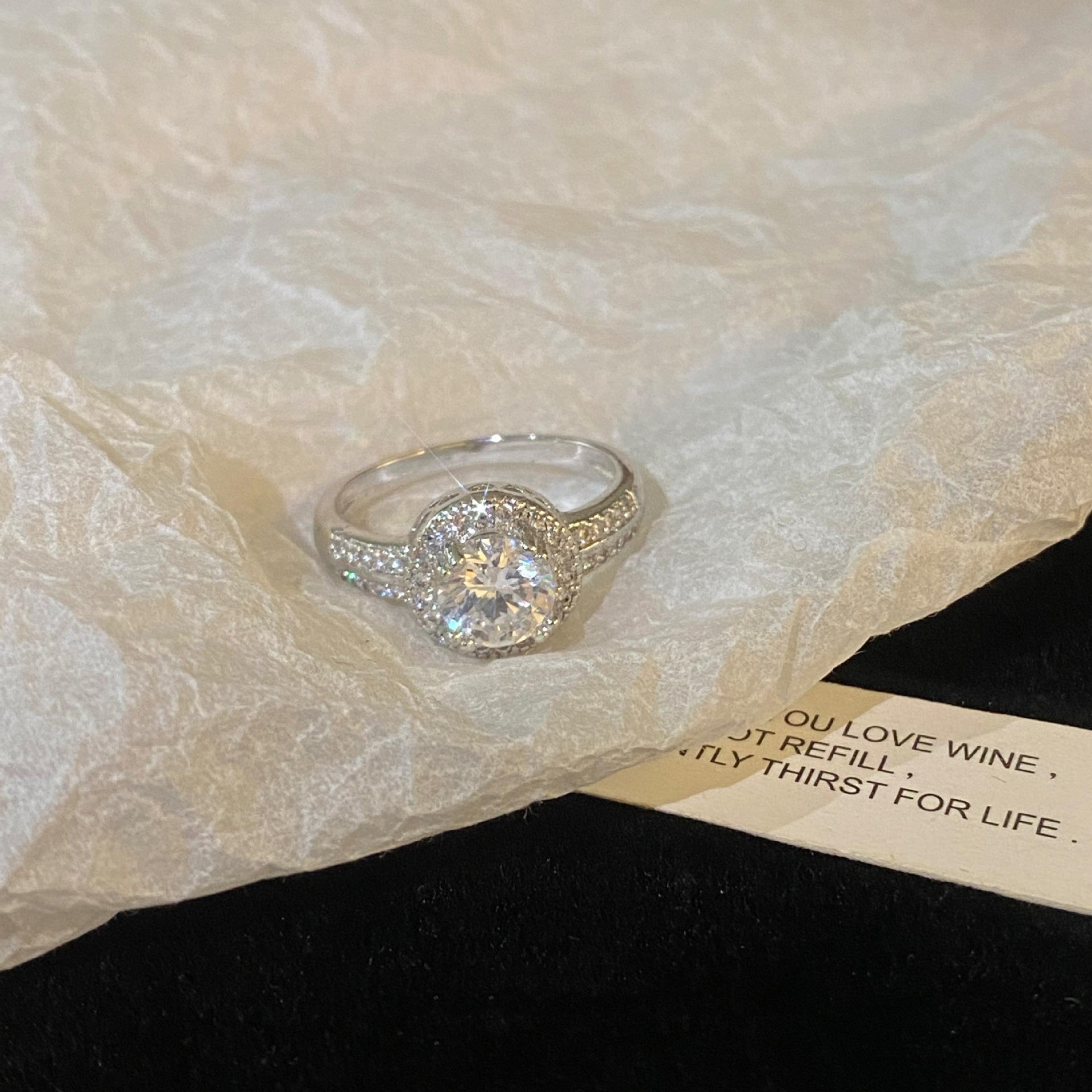 2024 Nuevo Estilo Japonés y Coreano Celebración de Internet Anillo Abierto Simple y Moderno Anillo de Diamante de Propuesta de Zirconia Imitación para Mujer Anillo Avanzado