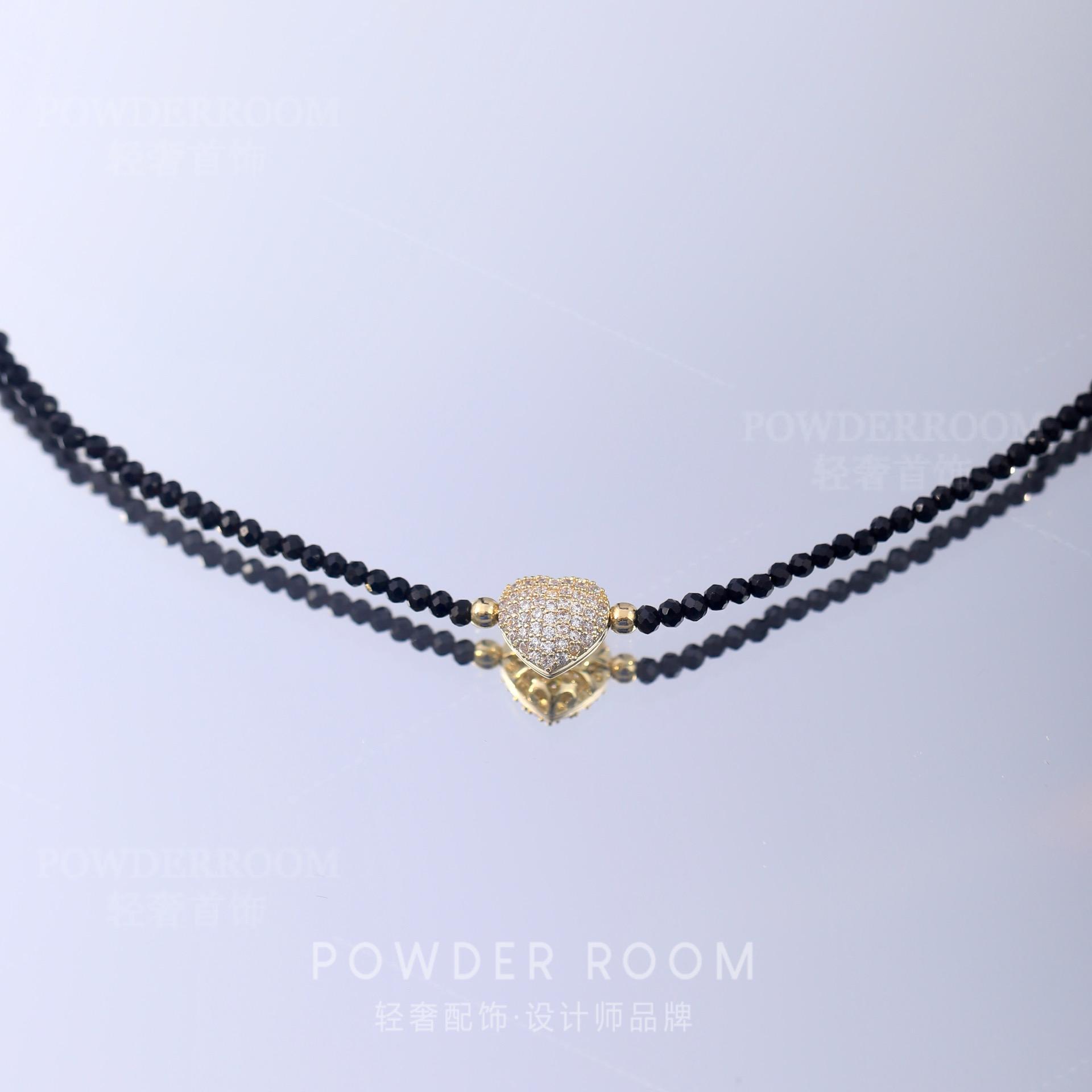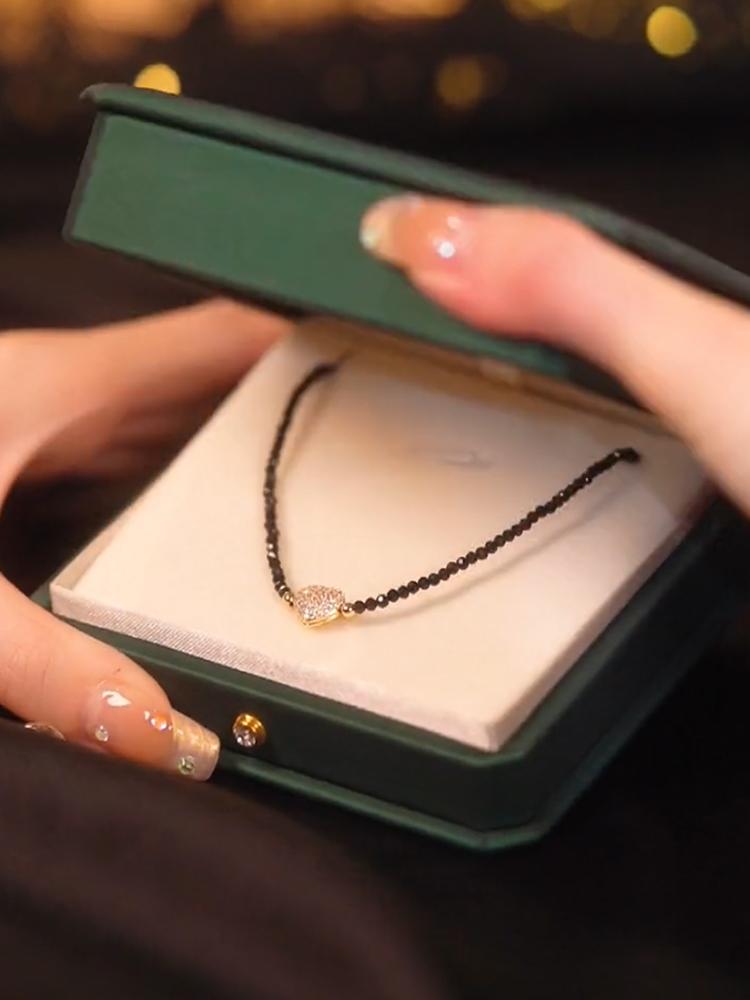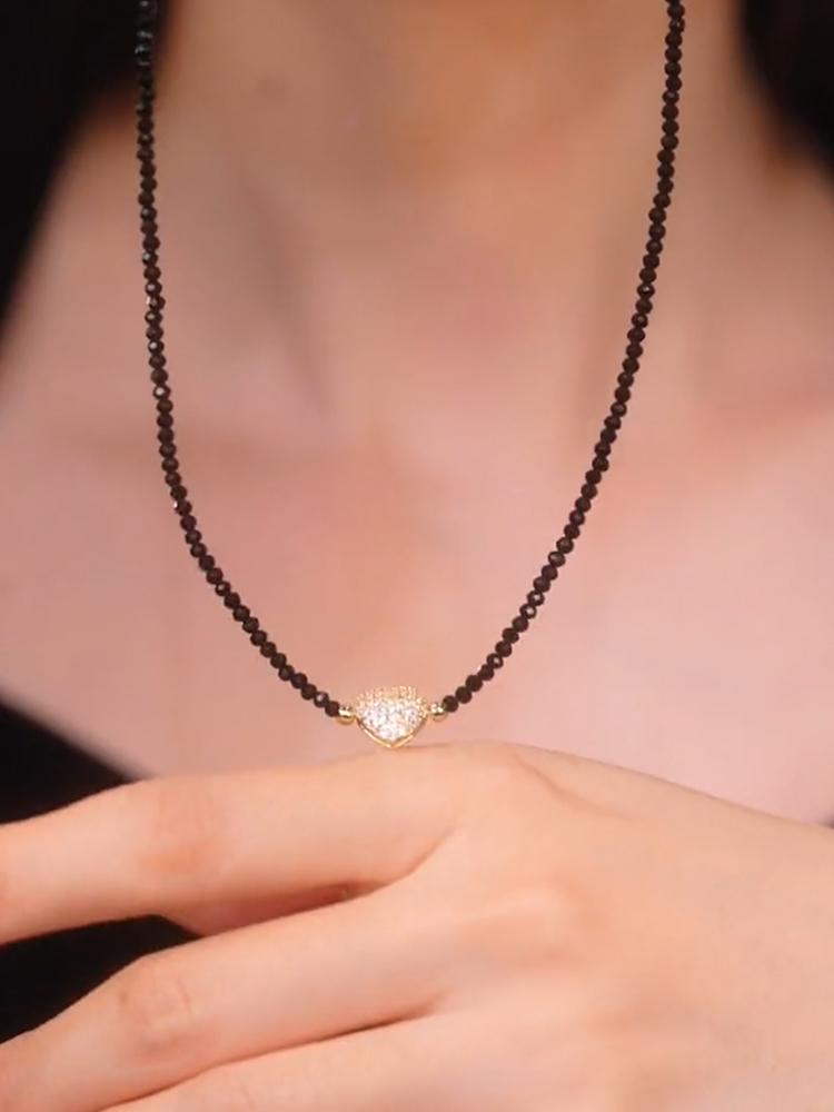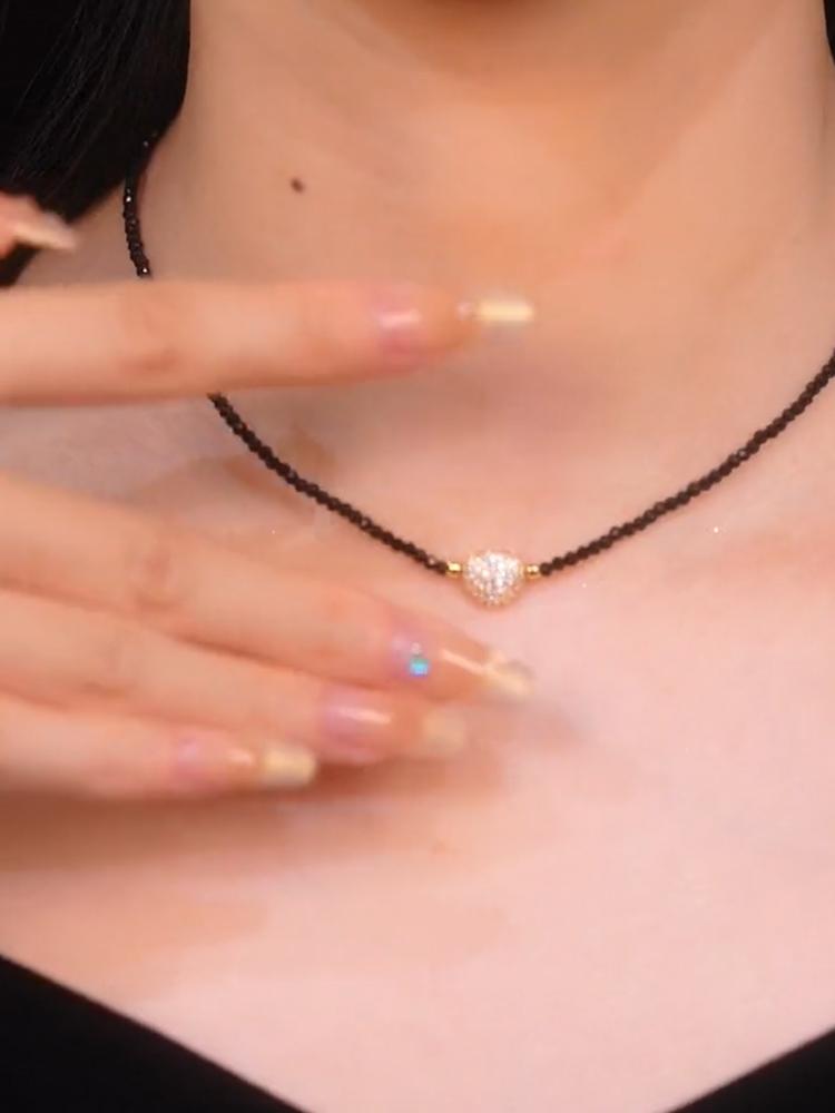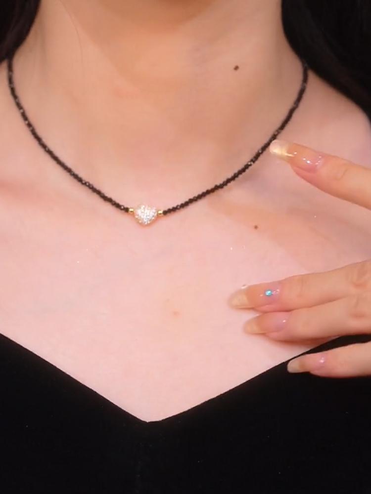 Collar de amor con microincrustaciones de circonitas súper hadas del mismo estilo de Tiktok, diseño de cuentas negras con sentido del temperamento de moda, collar de cadena de clavícula