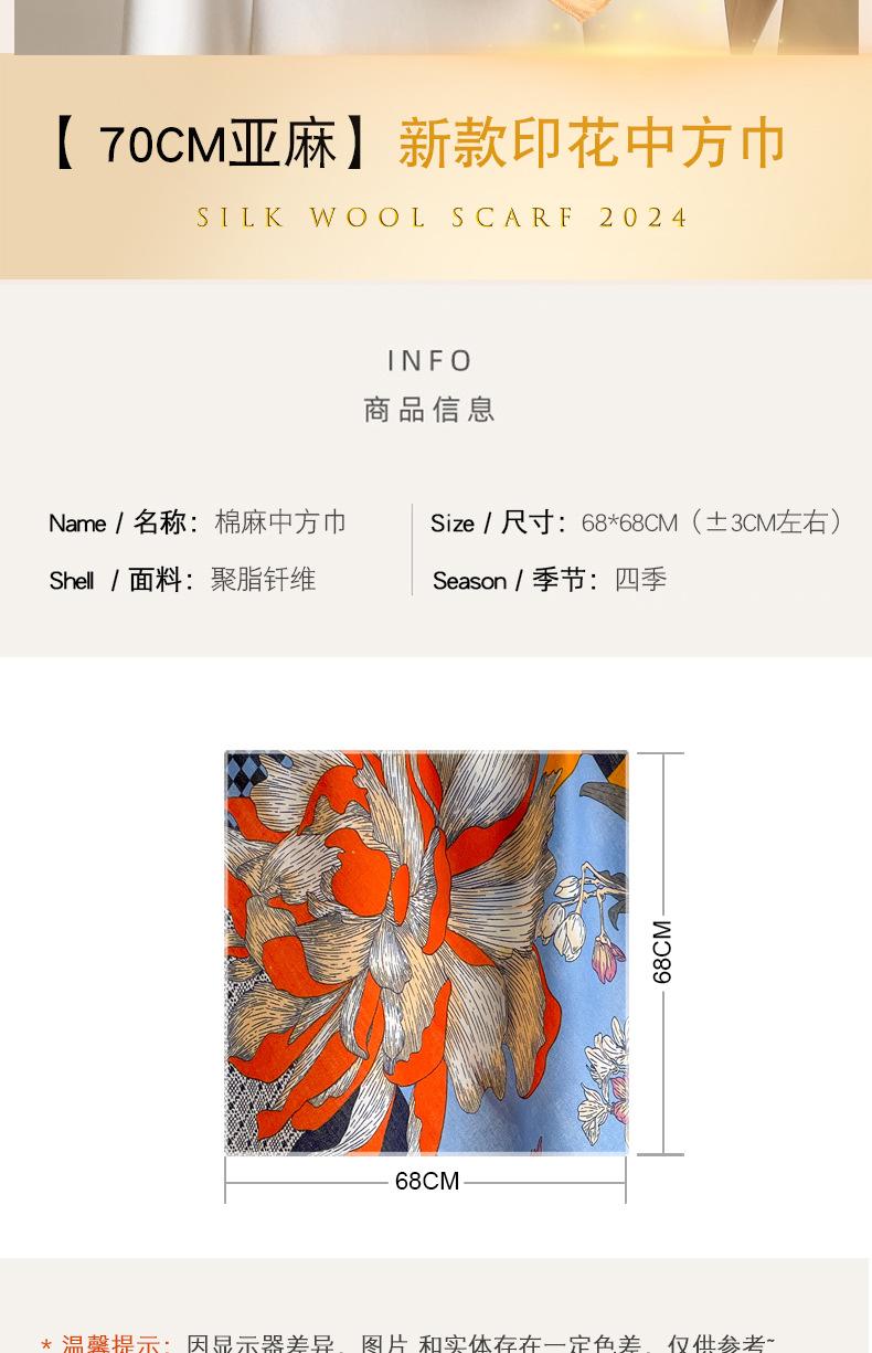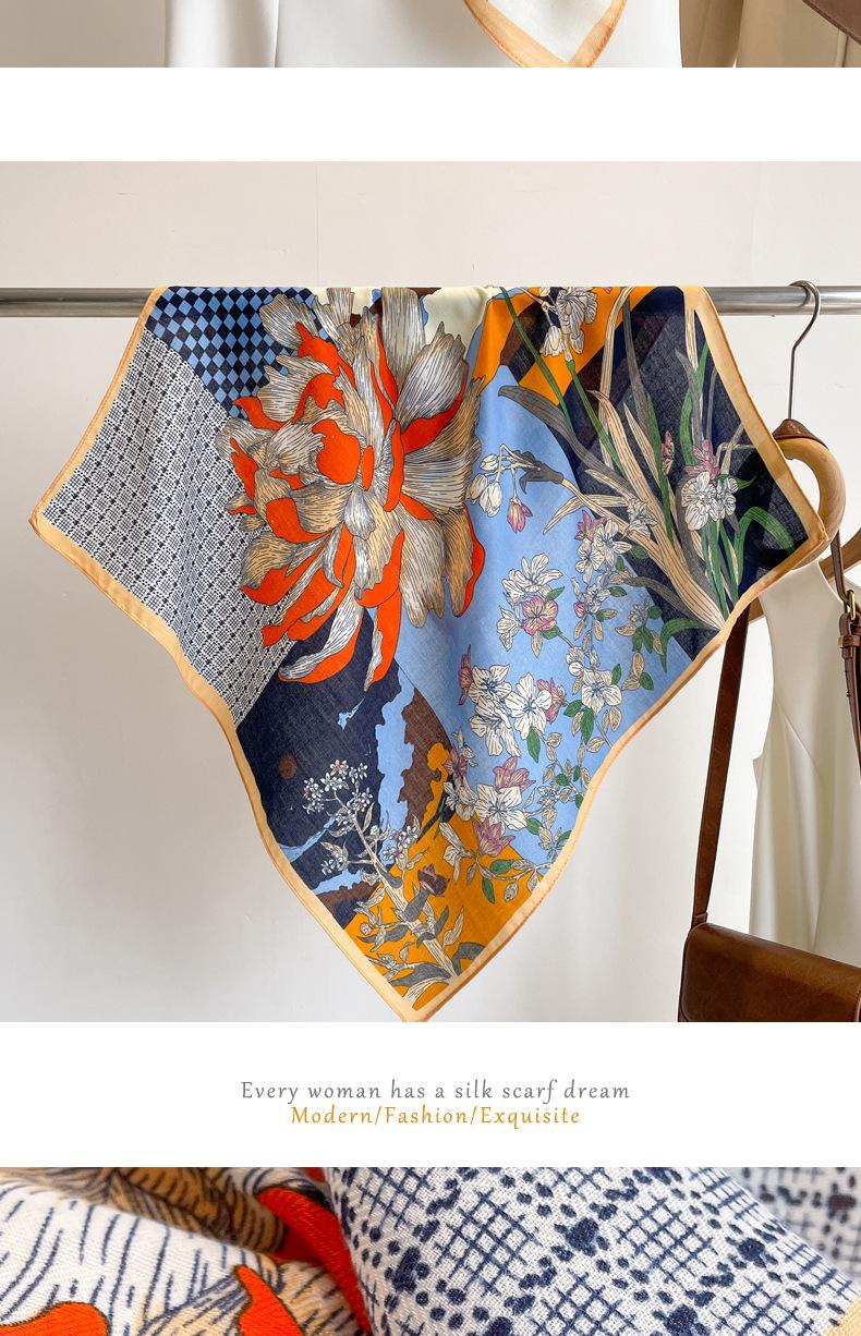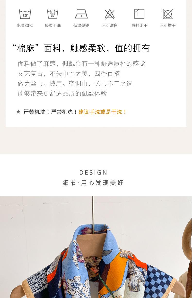 Bufanda de algodón y lino estilo pastoral de 70 cm, pequeña bufanda cuadrada para mujer, bufanda fina de primavera y otoño y verano, bufanda de lino, regalo para madre.